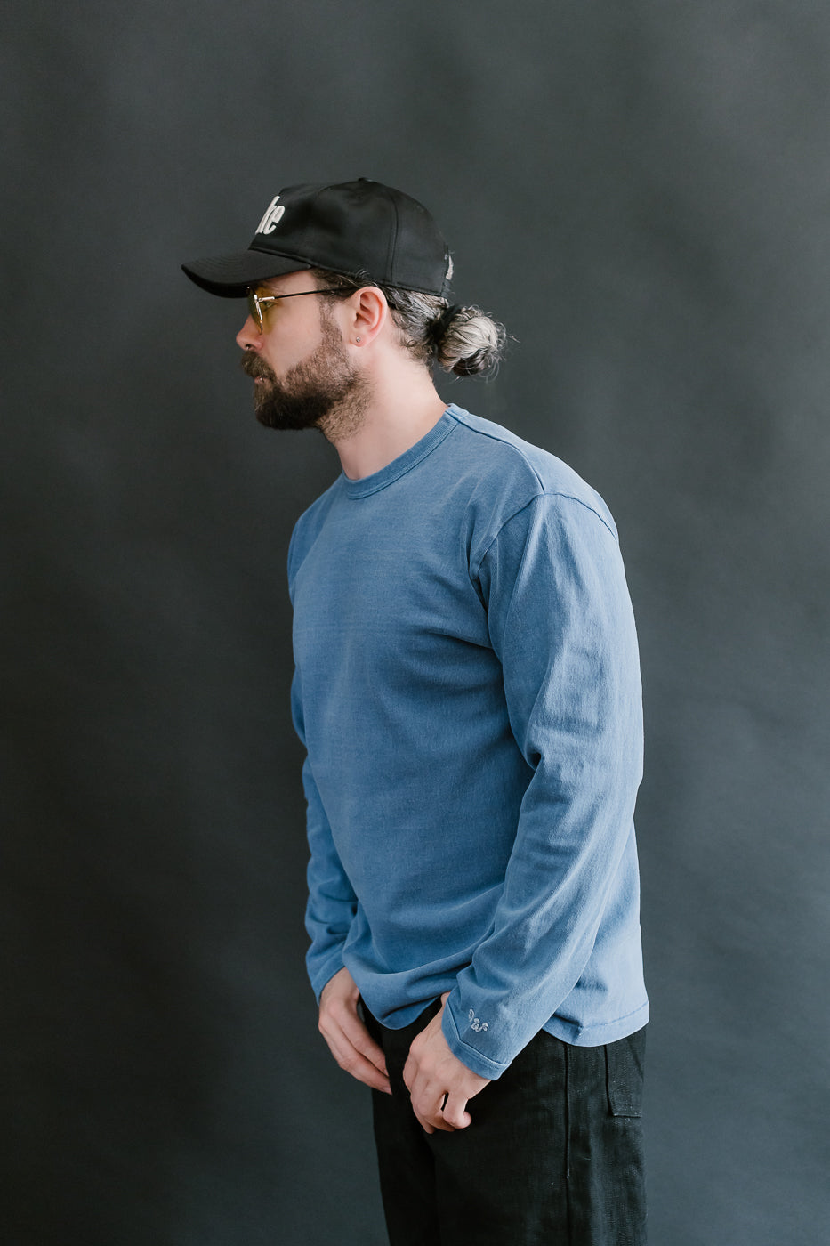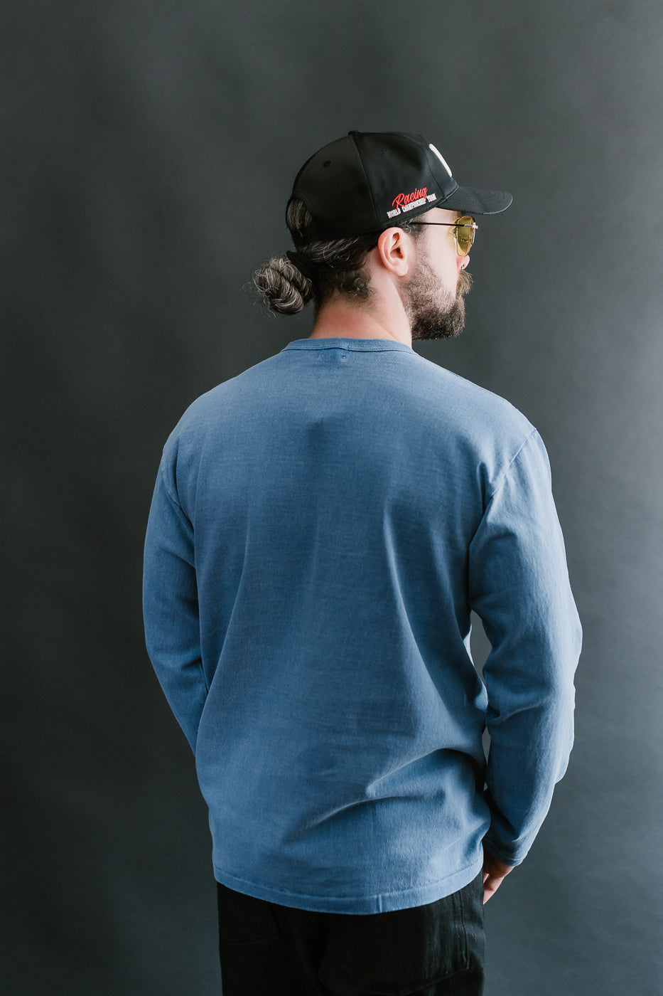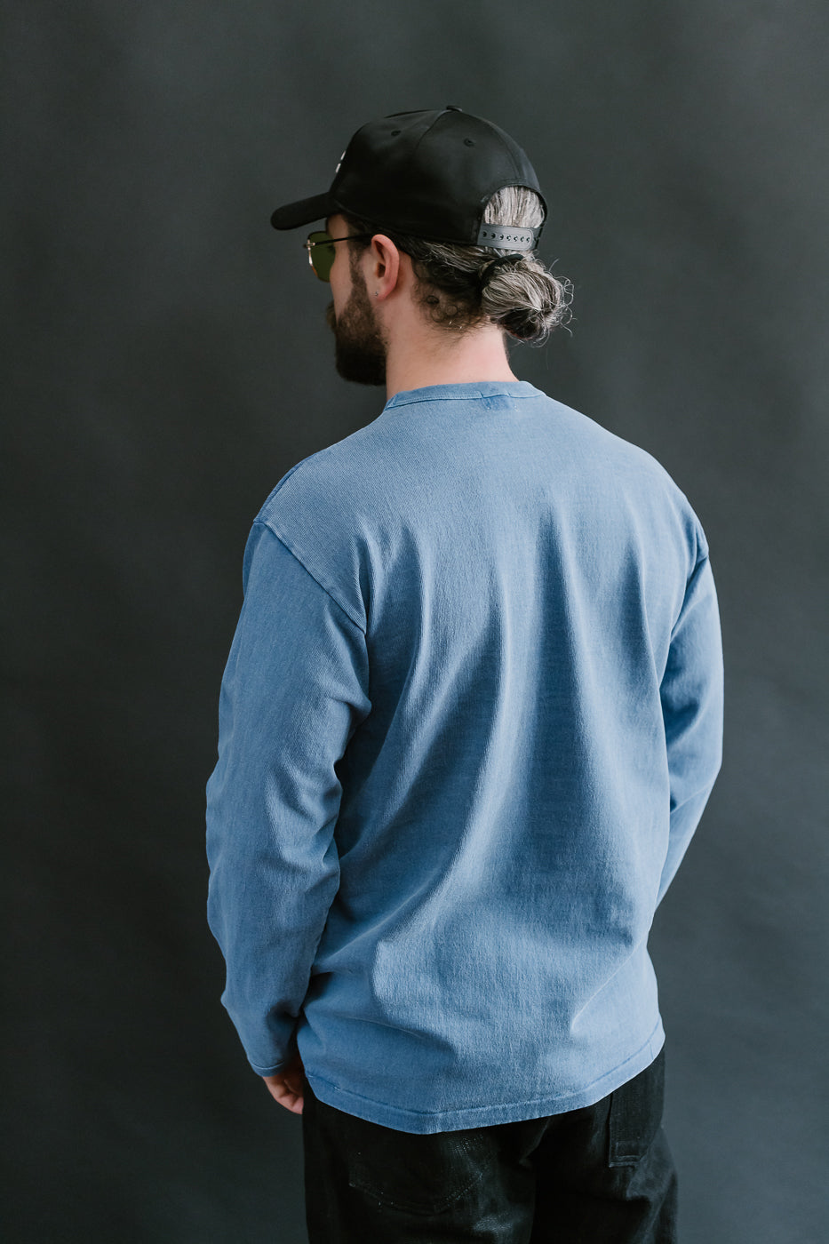 "Stand Wheel" Heavyweight Long Sleeve Pigment Dyed Tee - Light Indigo