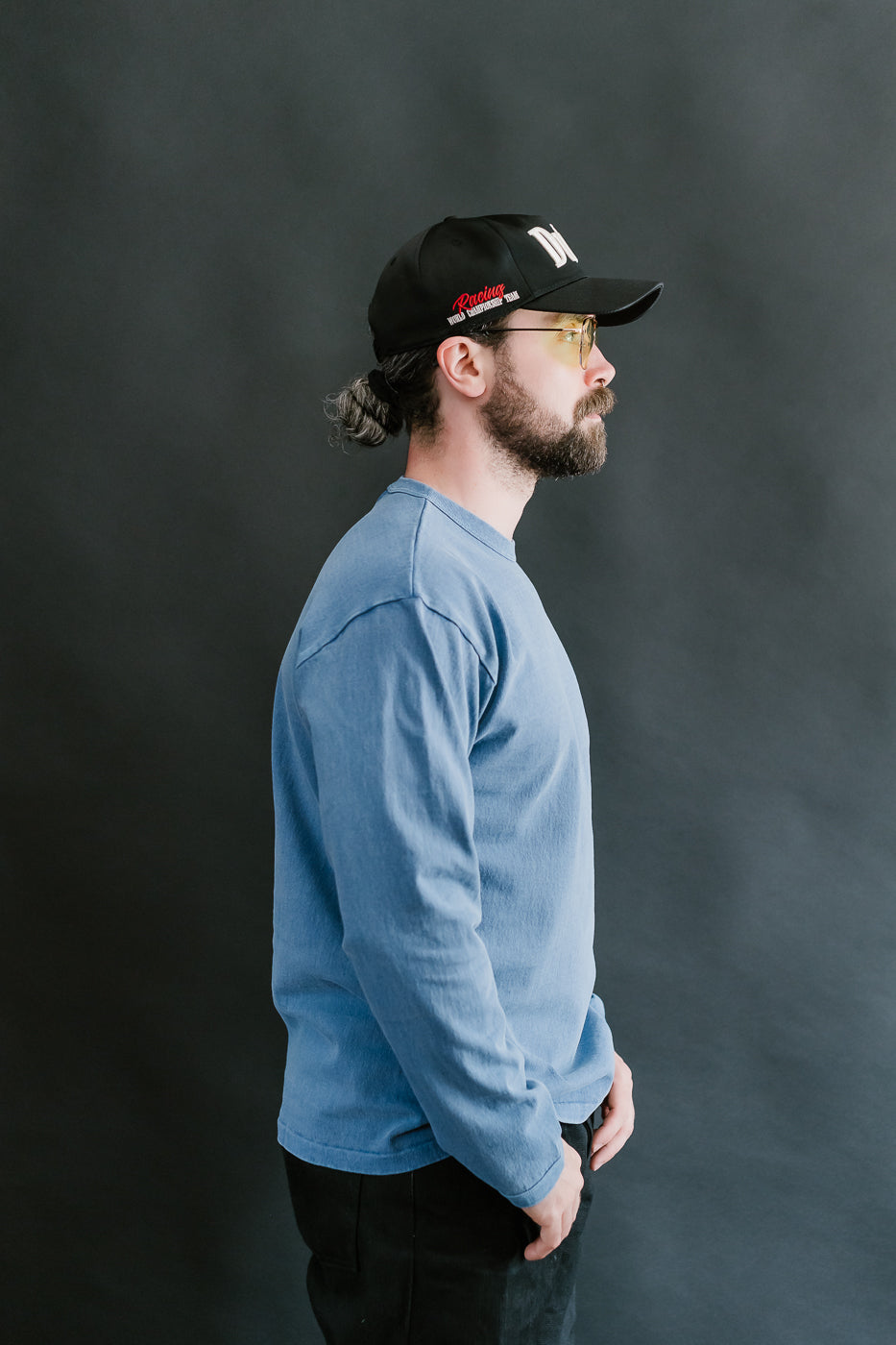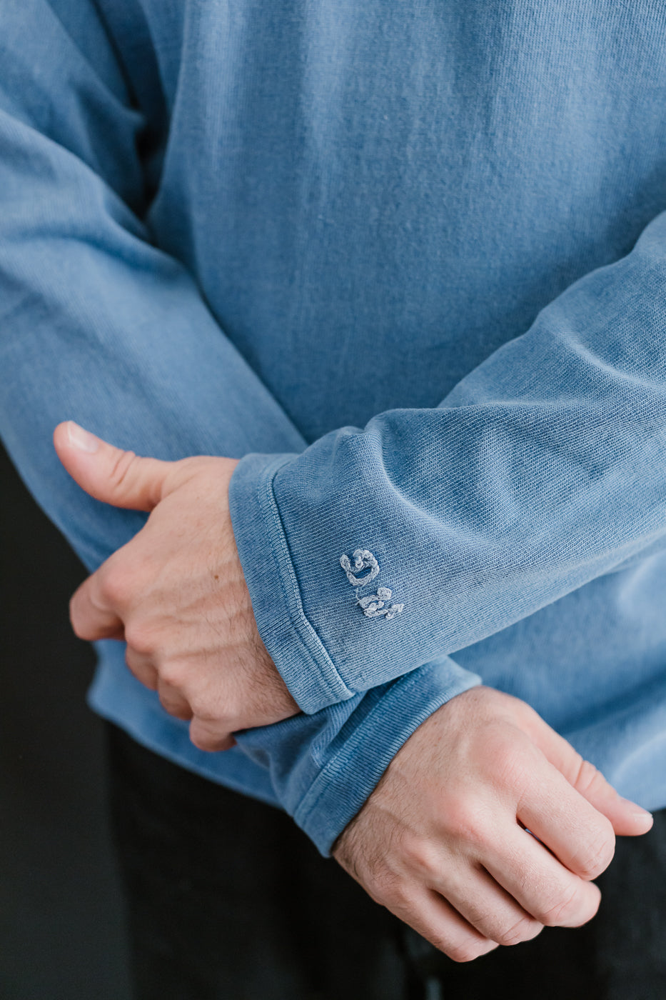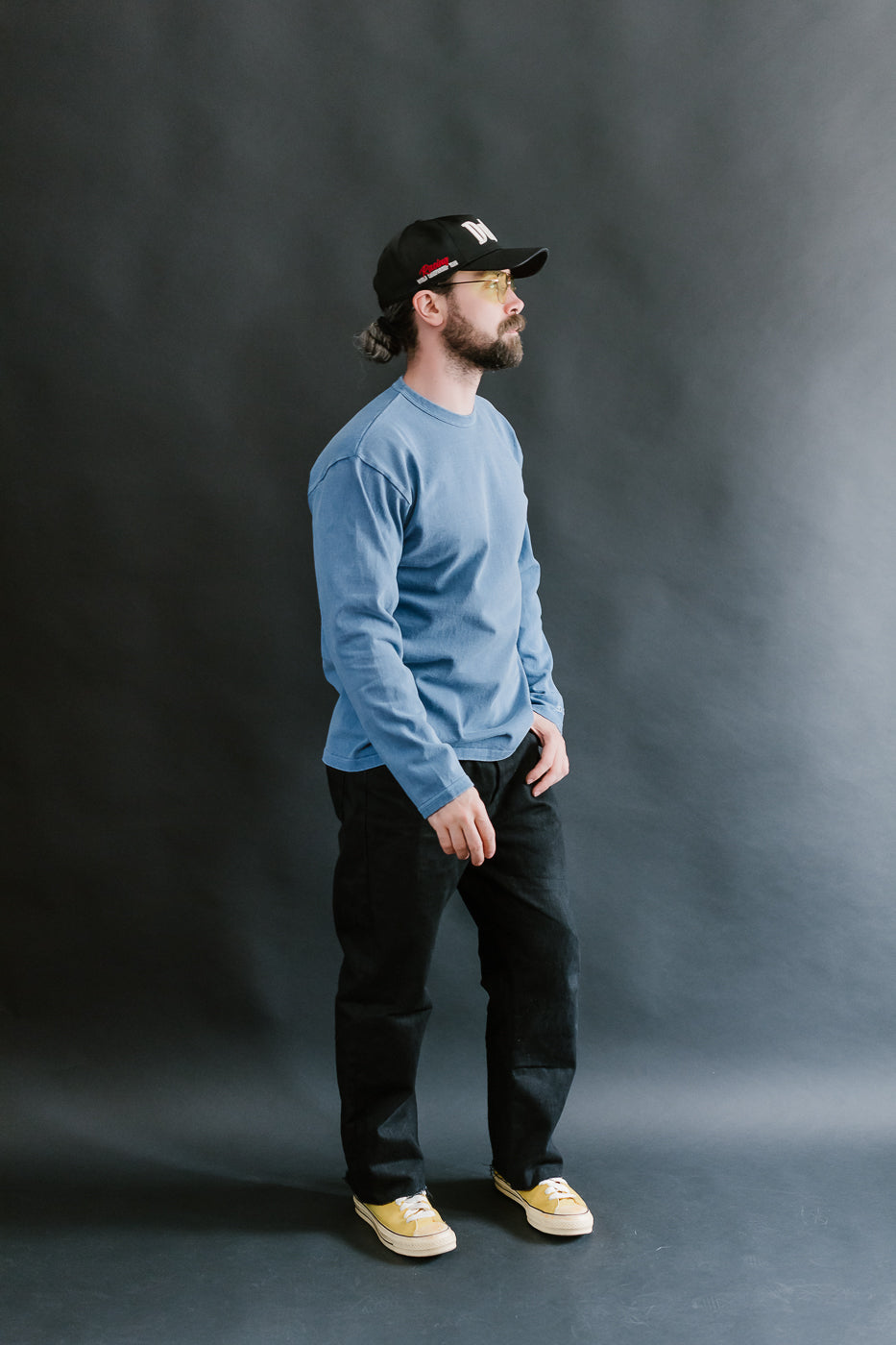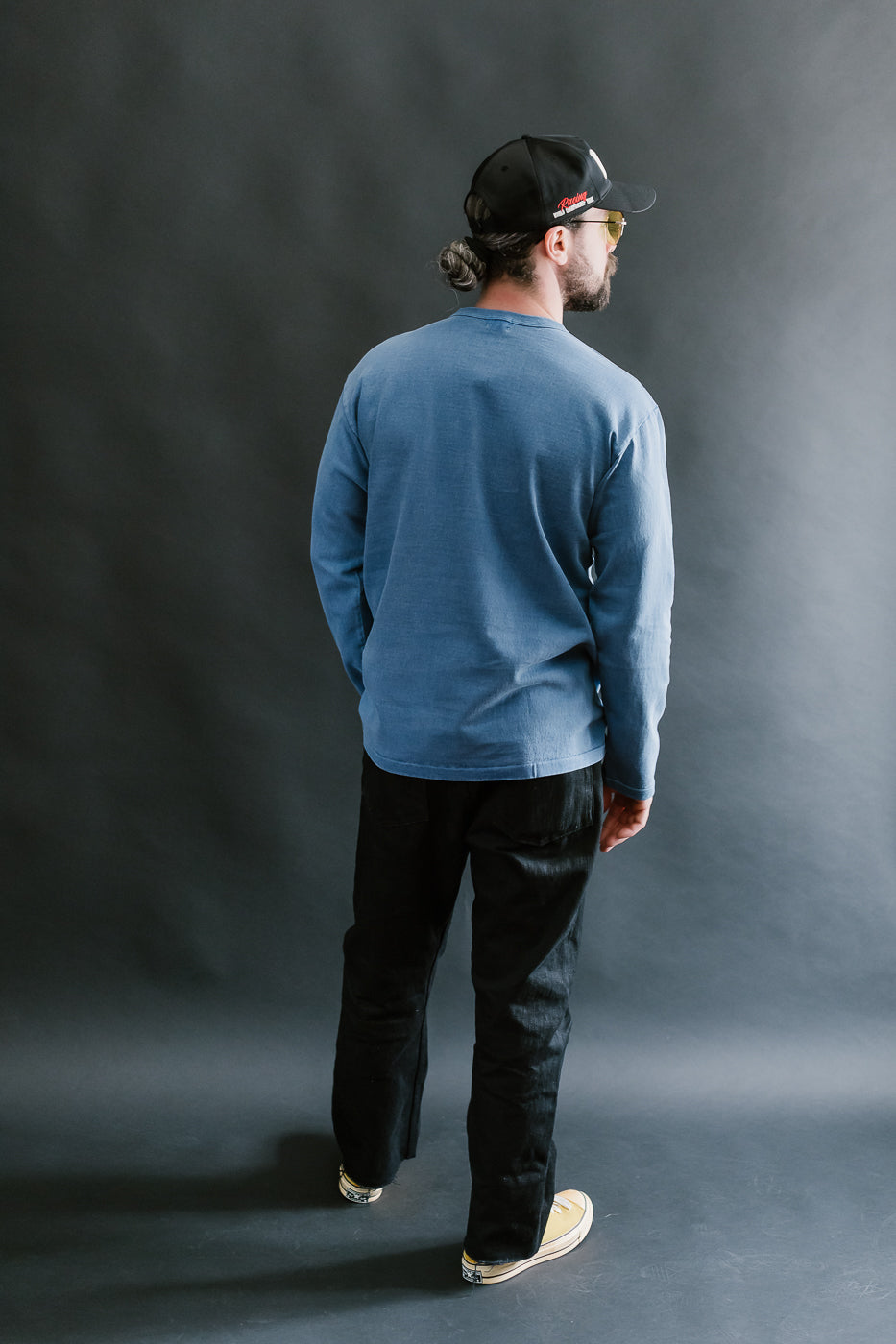 "Stand Wheel" Heavyweight Long Sleeve Pigment Dyed Tee - Light Indigo