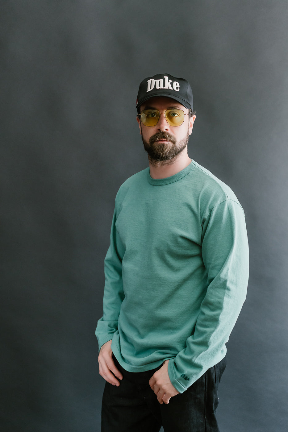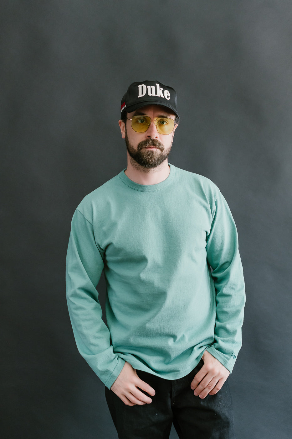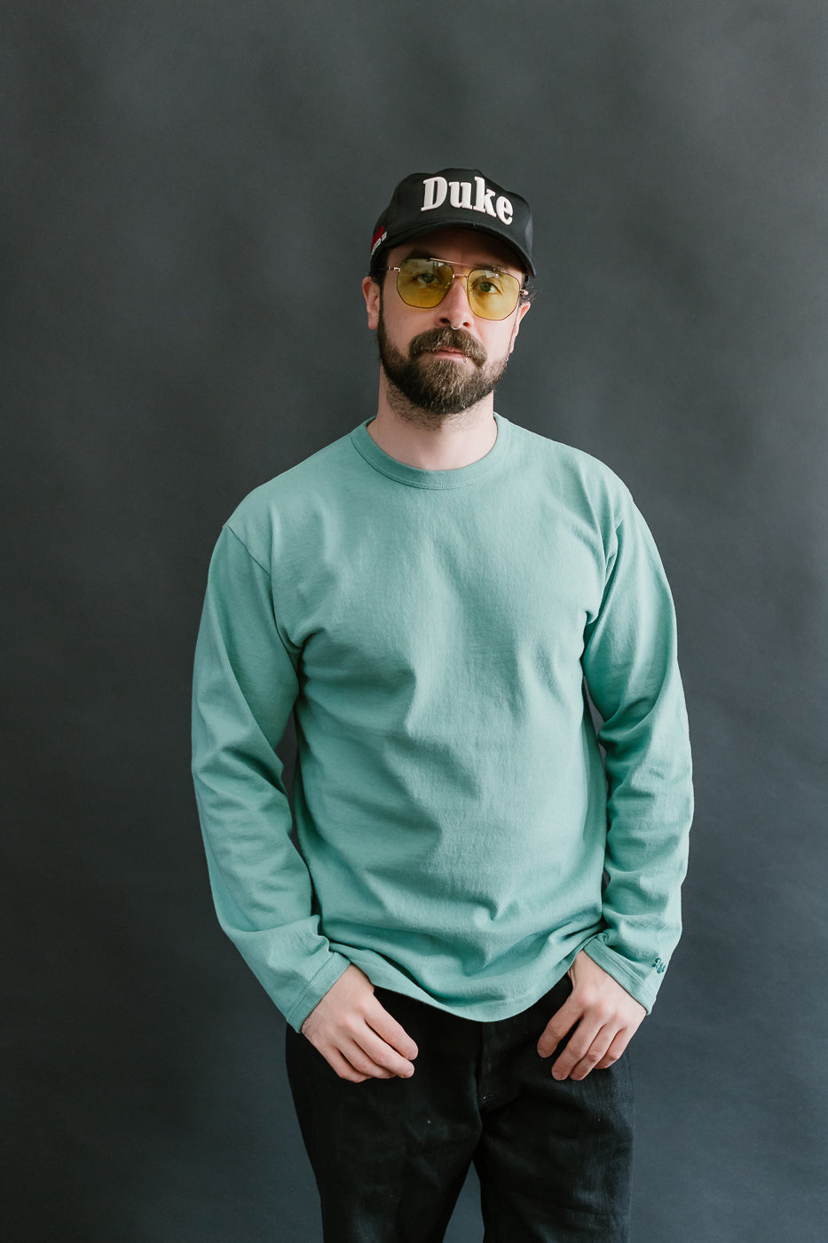 We love these tees, especially this time of year. Typically, a heavyweight shirt is stiff and more difficult to wear, but the stand-wheeler machine creates a more loosely woven, softer fabric. They've also taken the additional step of binding the neck instead of sewing it on. This significantly increases the life of the ribs. This season's variations are absolutely stunning in person. And they finished it with a nice little DW embroidery on the cuff. These are very quickly becoming something we look forward to and must have season after season.