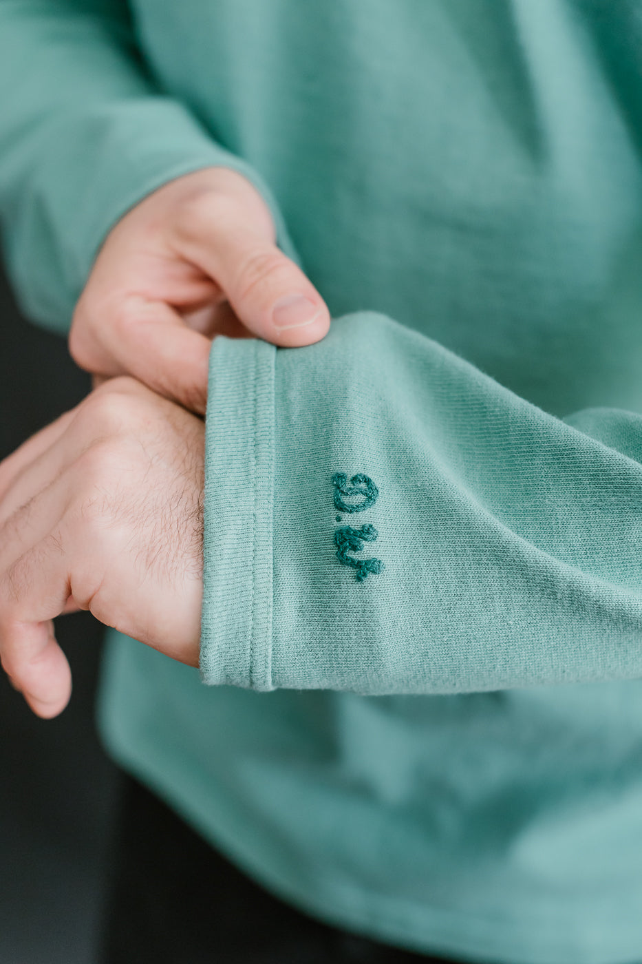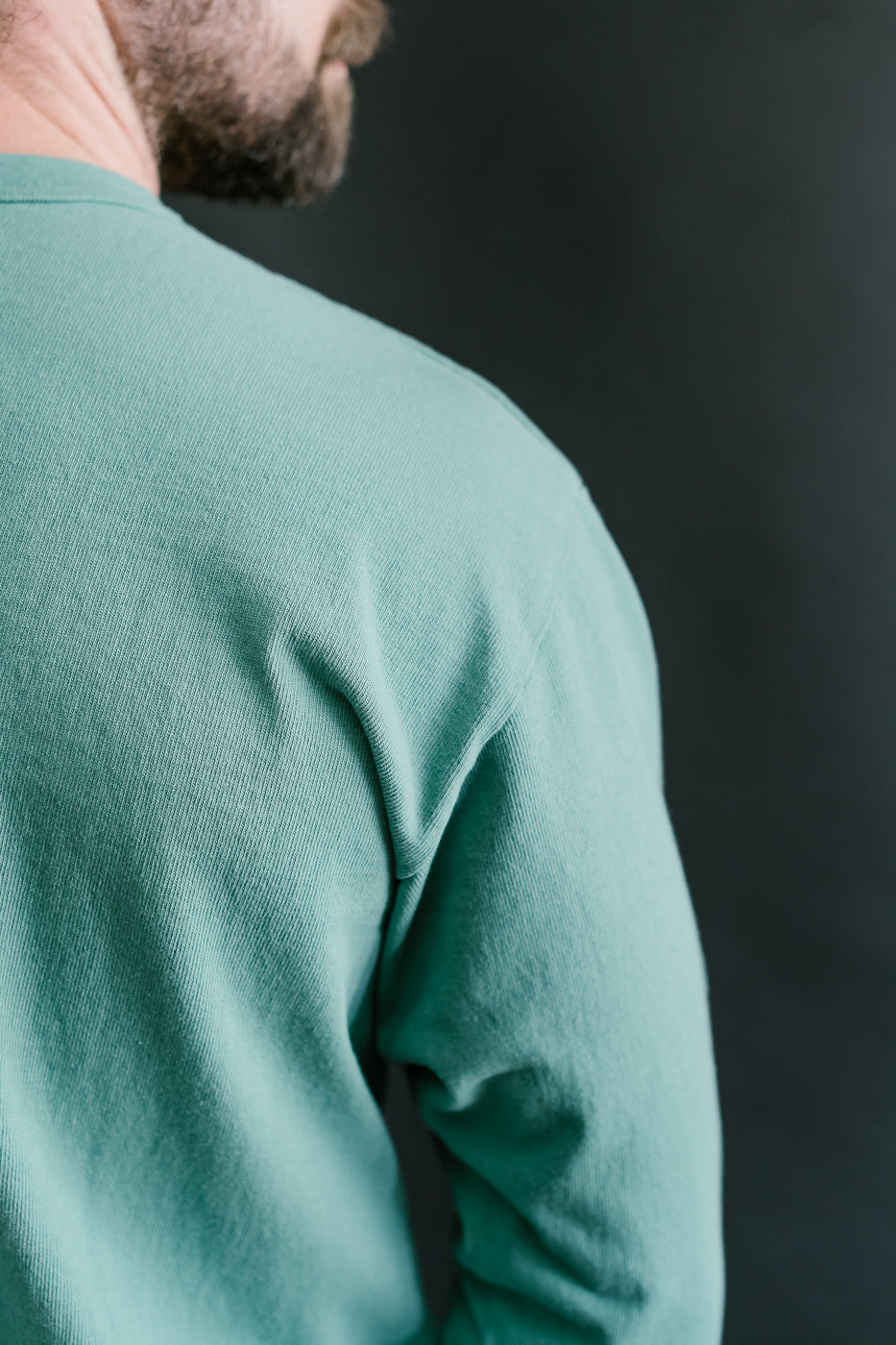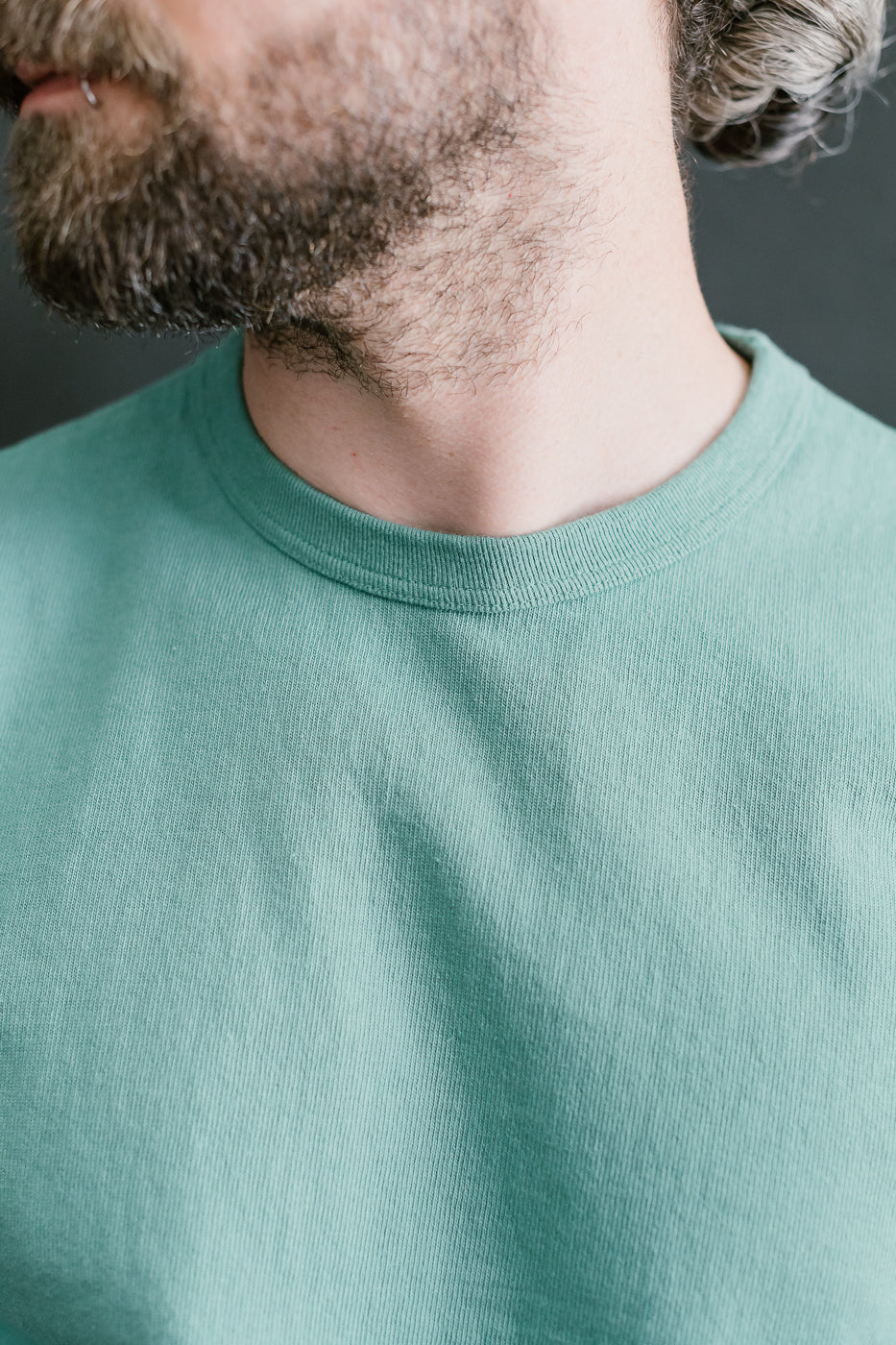 We love these tees, especially this time of year. Typically, a heavyweight shirt is stiff and more difficult to wear, but the stand-wheeler machine creates a more loosely woven, softer fabric. They've also taken the additional step of binding the neck instead of sewing it on. This significantly increases the life of the ribs. This season's variations are absolutely stunning in person. And they finished it with a nice little DW embroidery on the cuff. These are very quickly becoming something we look forward to and must have season after season.