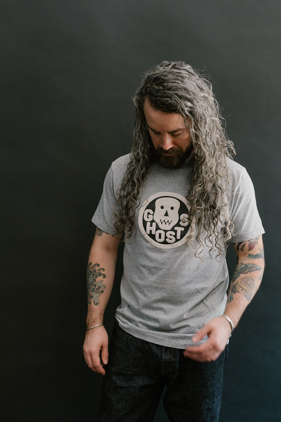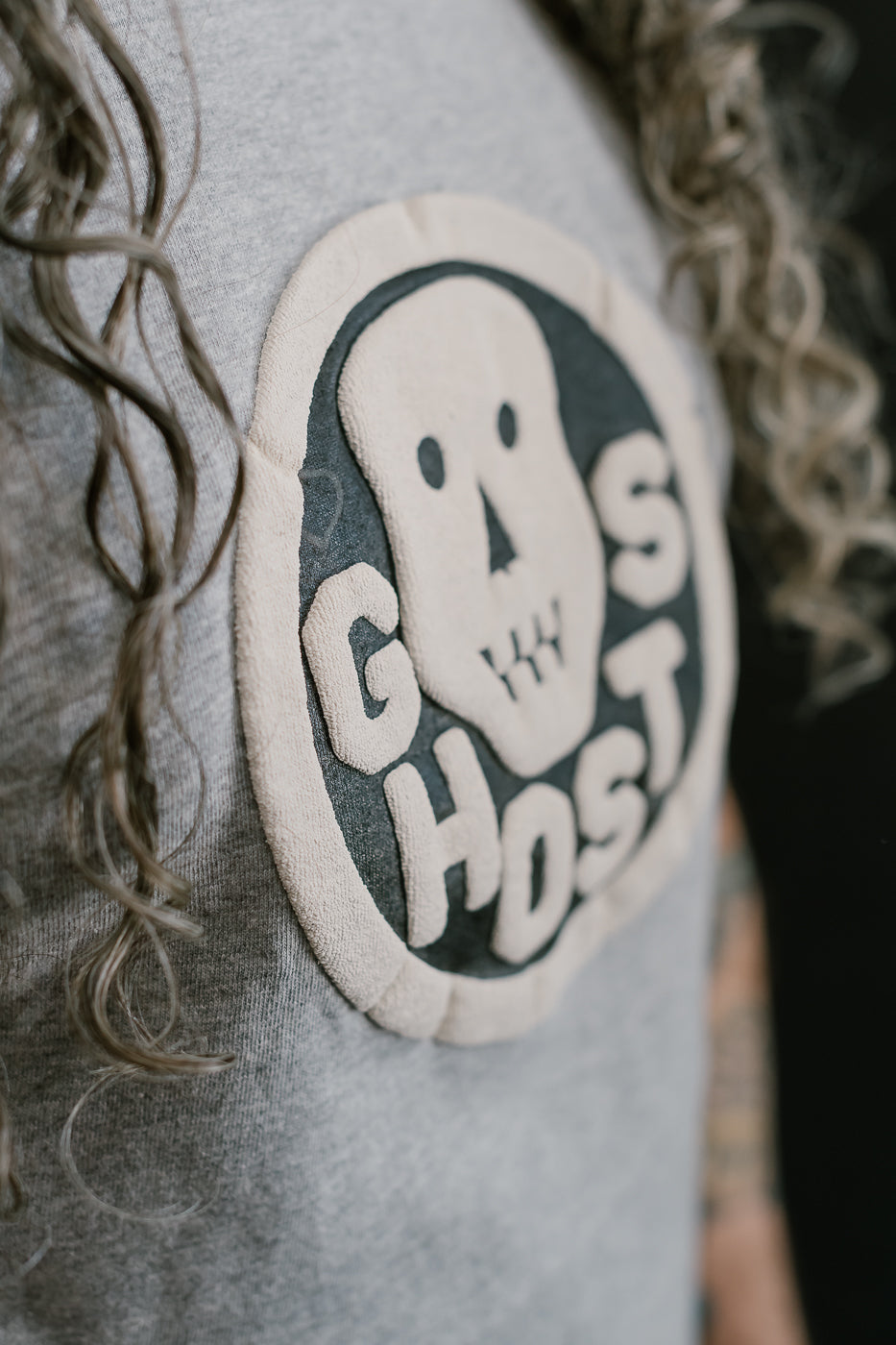 "Slub Jersey" Flocky Ghosts Print Tee - Heather Grey