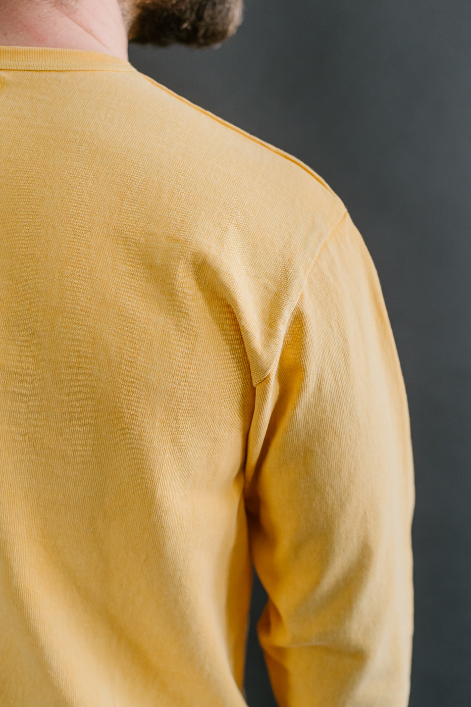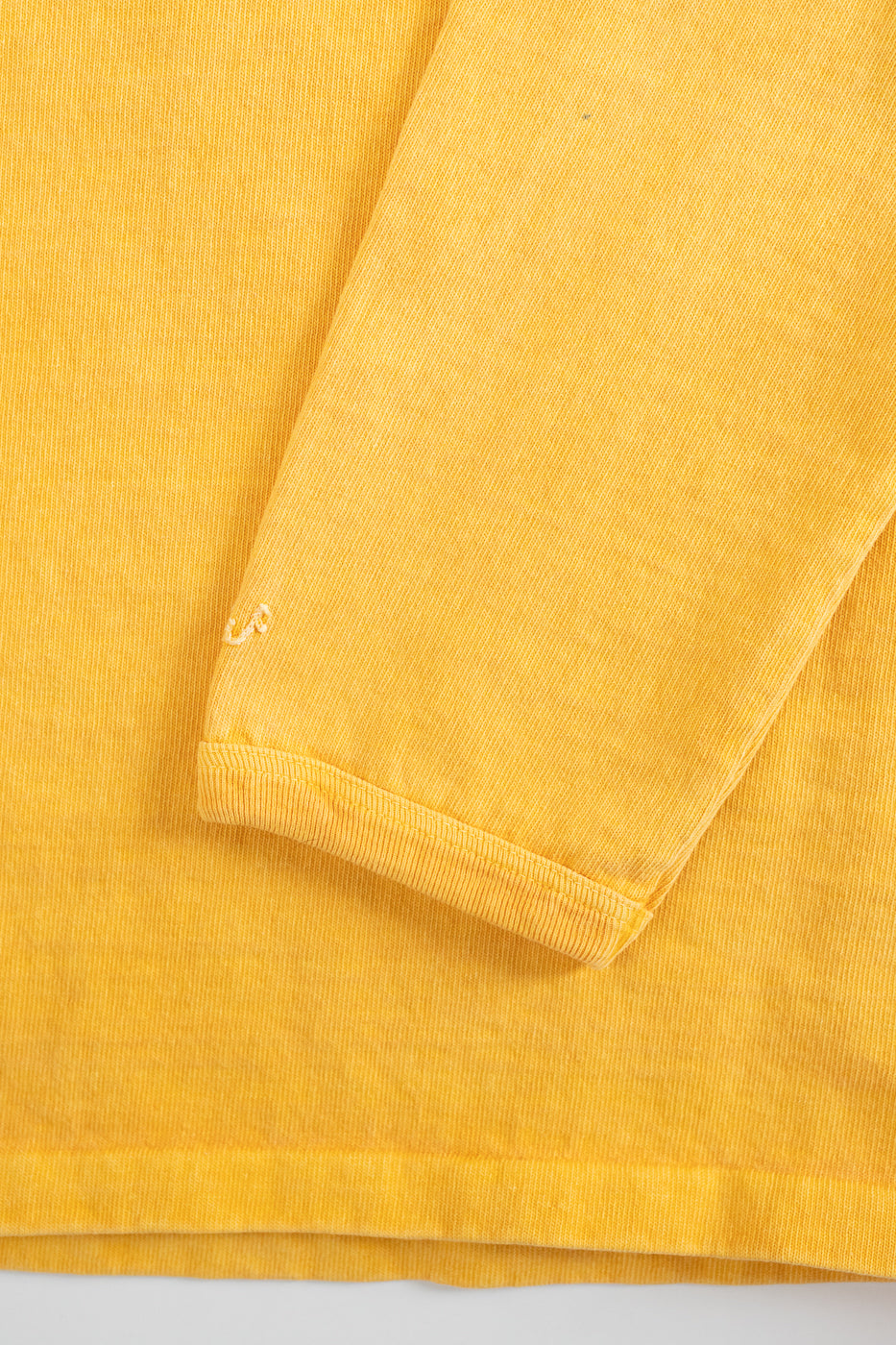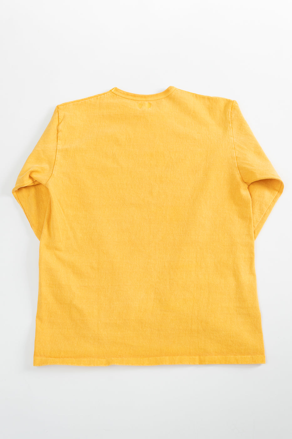We love the utility of a long-sleeved shirt. Whether for a layer of comfort under a wool CPO or a way to upgrade your standard tee, these "Stand Wheel" shirts are a wonderful option. Typically, a heavyweight shirt is stiff and more difficult to wear, but the stand-wheeler machine creates a loosely woven, softer fabric. They've also taken the additional step of binding the cuffs and hem instead of sewing them on. This significantly increases the life of the ribs. The pigment-dyed variations are absolutely stunning in person. This heavyweight fabric takes the dye in a way that makes it look immediately vintage. They've polished this piece with a pretty little chainstitch style DW on the sleeve.