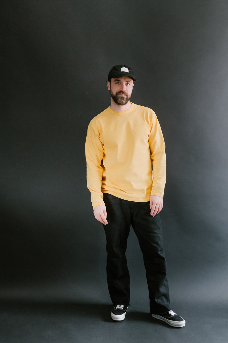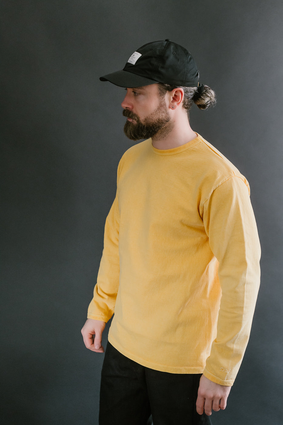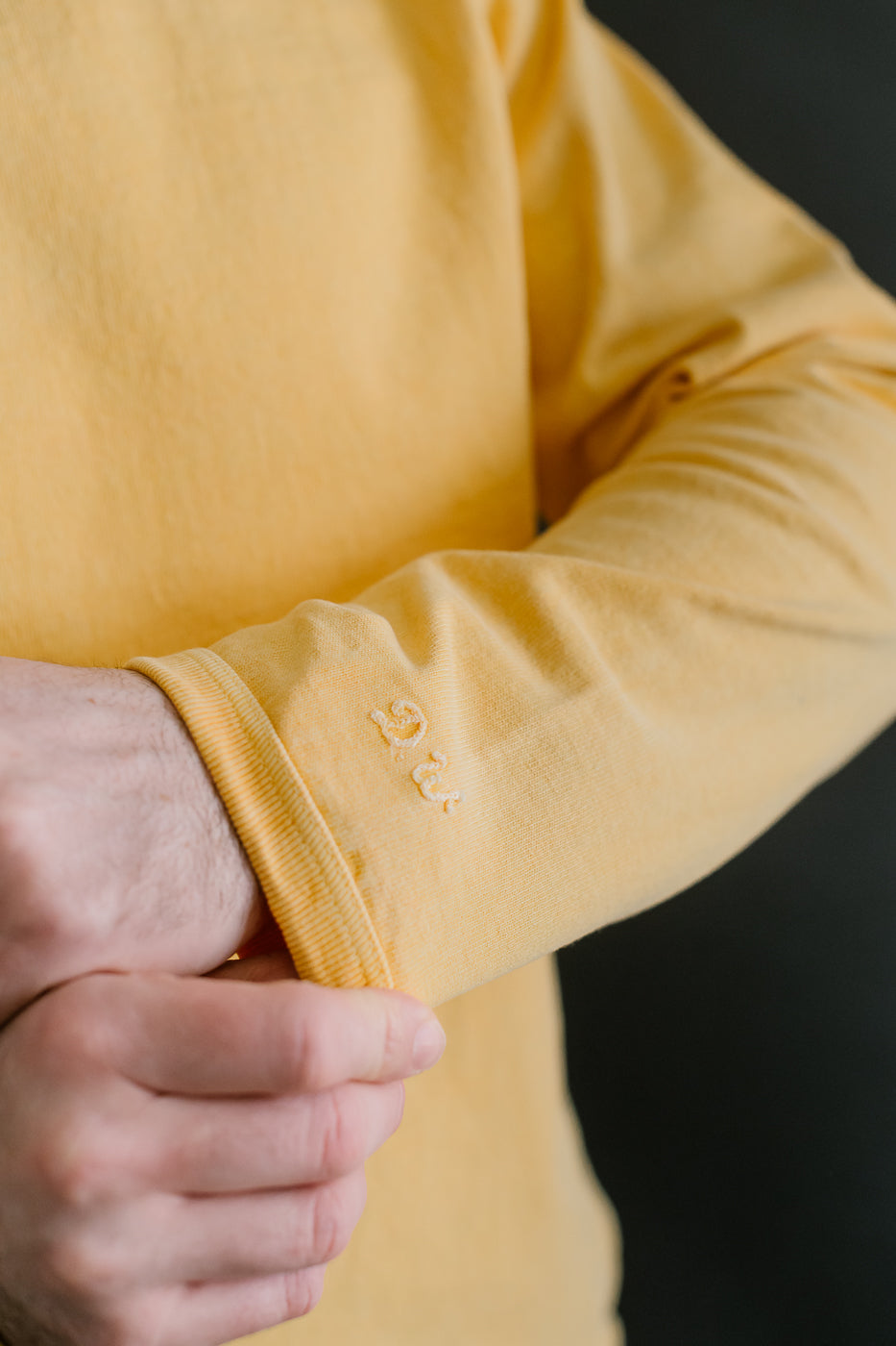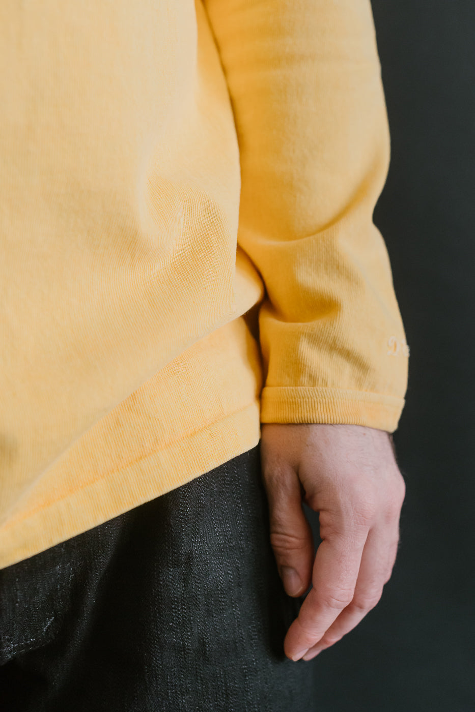 We love the utility of a long-sleeved shirt. Whether for a layer of comfort under a wool CPO or a way to upgrade your standard tee, these "Stand Wheel" shirts are a wonderful option. Typically, a heavyweight shirt is stiff and more difficult to wear, but the stand-wheeler machine creates a loosely woven, softer fabric. They've also taken the additional step of binding the cuffs and hem instead of sewing them on. This significantly increases the life of the ribs. The pigment-dyed variations are absolutely stunning in person. This heavyweight fabric takes the dye in a way that makes it look immediately vintage. They've polished this piece with a pretty little chainstitch style DW on the sleeve.