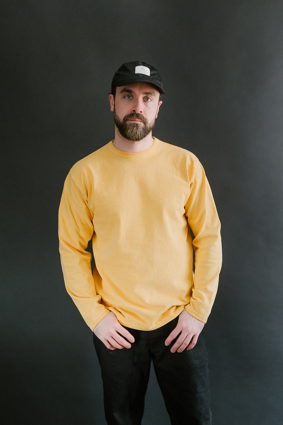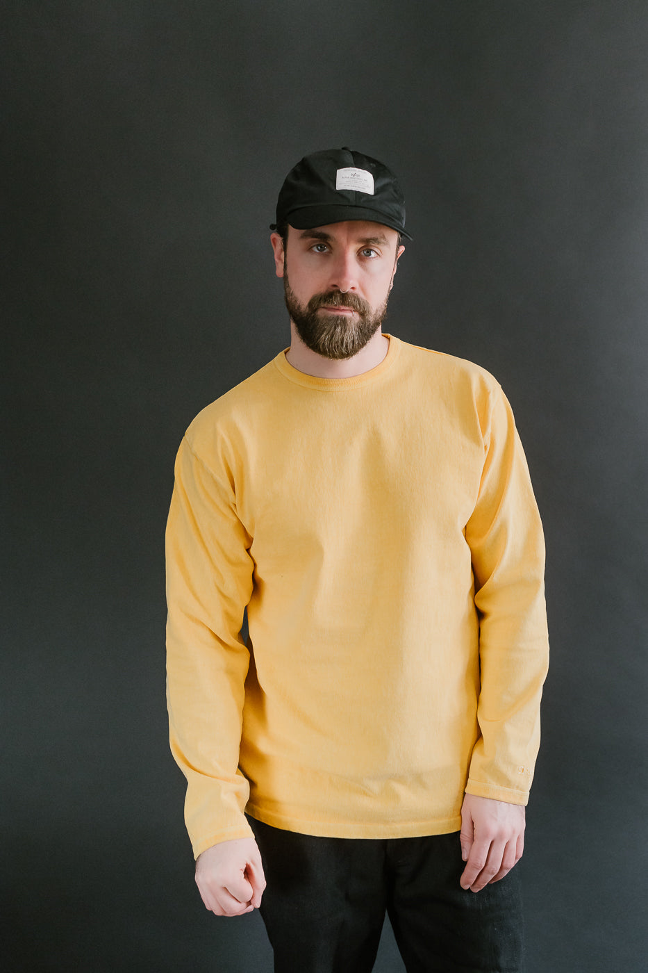 "Stand Wheel" Heavyweight Long Sleeve Pigment Dyed Tee - Gold