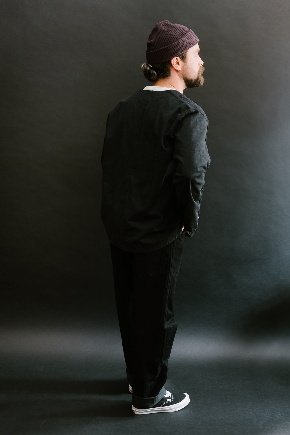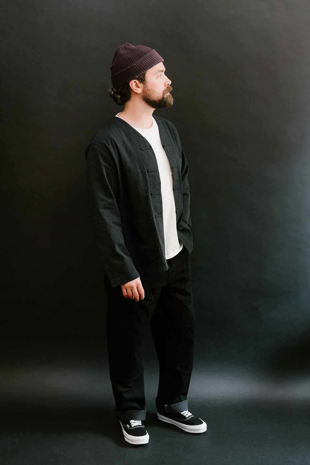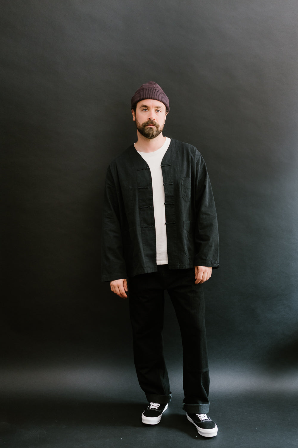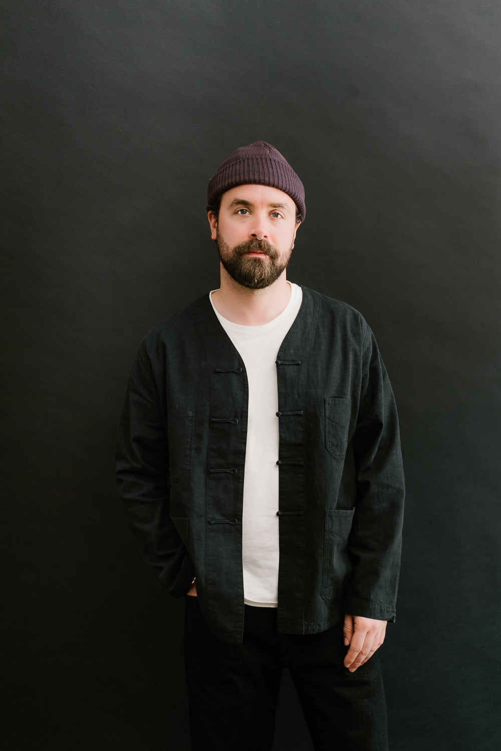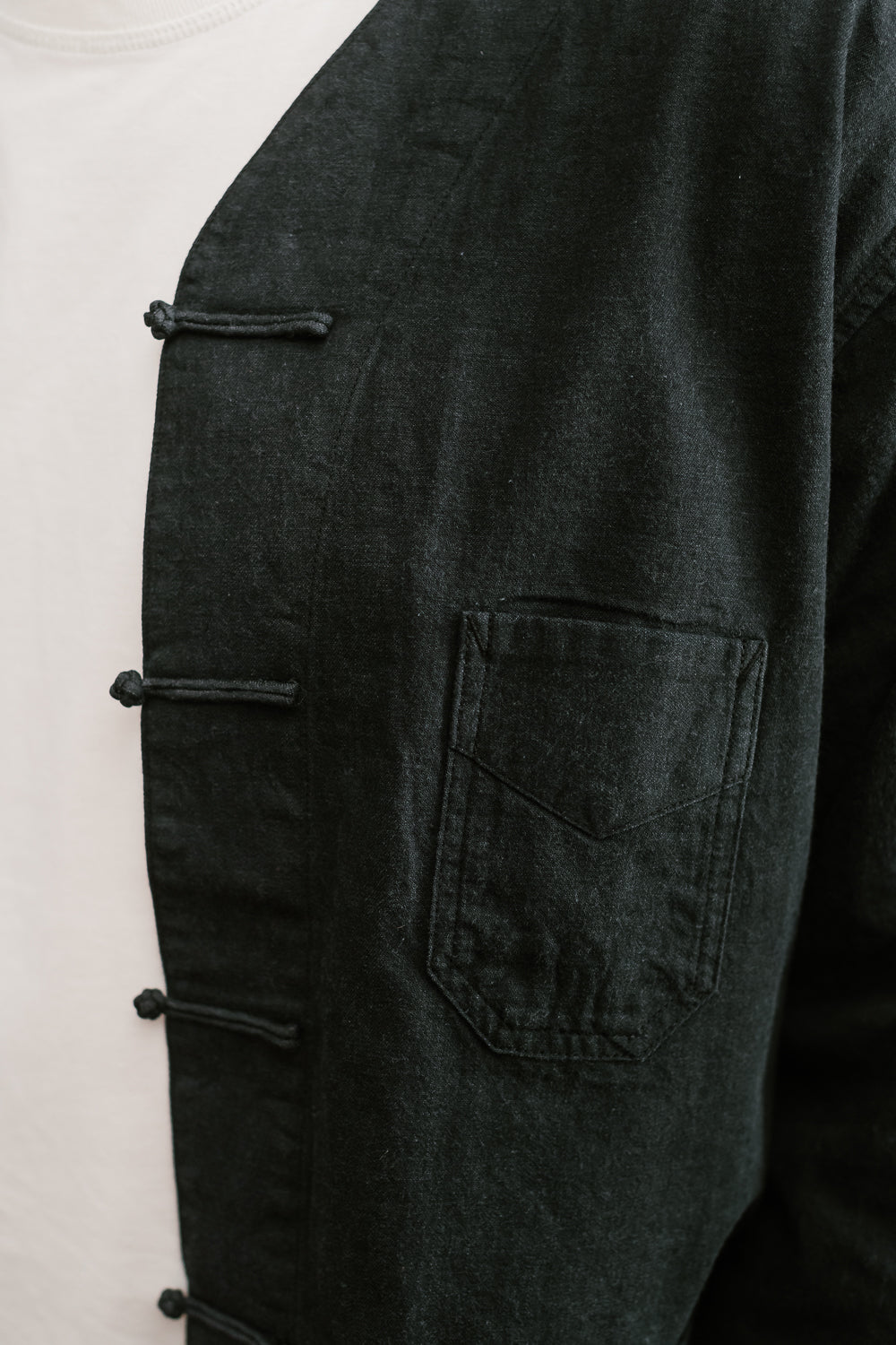 One of the first items on the list that drew our attention was the Chinois. The question was collar or no collar. Well for this first round, we opted for the collarless version which felt a little more fun for layering. This is a fusion of vintage French China and pre-war French Workwear. This is going to wear like your favorite French chore coat but with all the styling of a kung-fu shirt. Those micro monkey knots are such a beautiful, functional addition to the piece. And the fabric is to die for. It's super lightweight with that nice vintage hand-feel we all look for in a well-worn cotton piece. We think this is one of the most versatile items in their lineup as it can be worn as a shirt, outerwear, and cardigan.