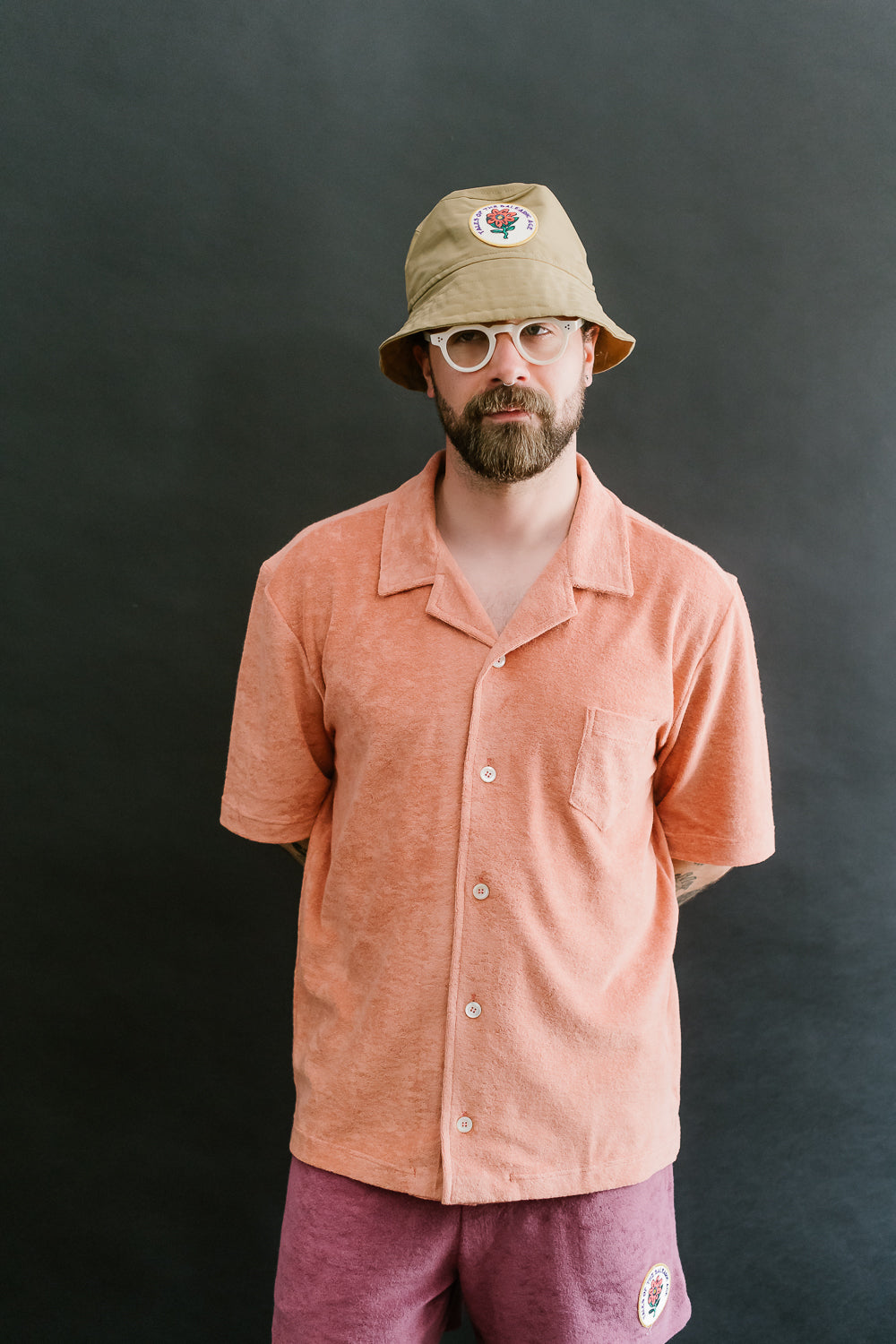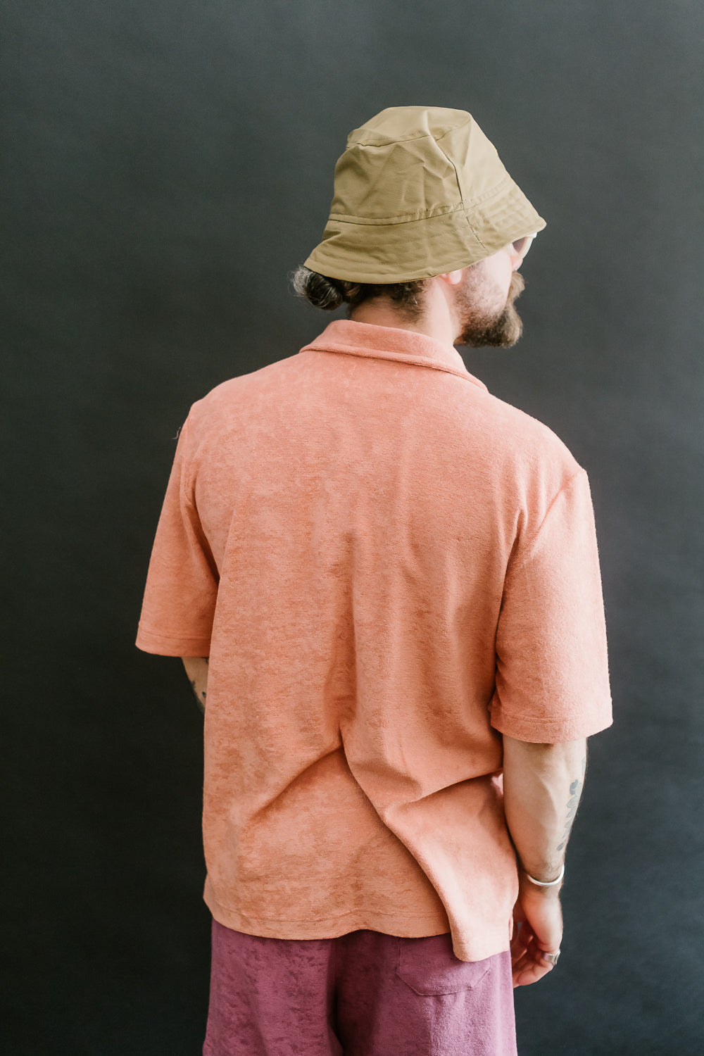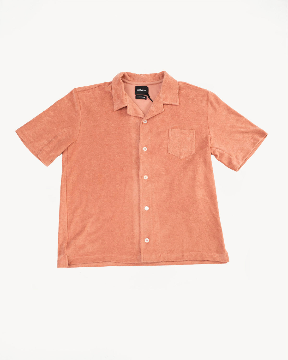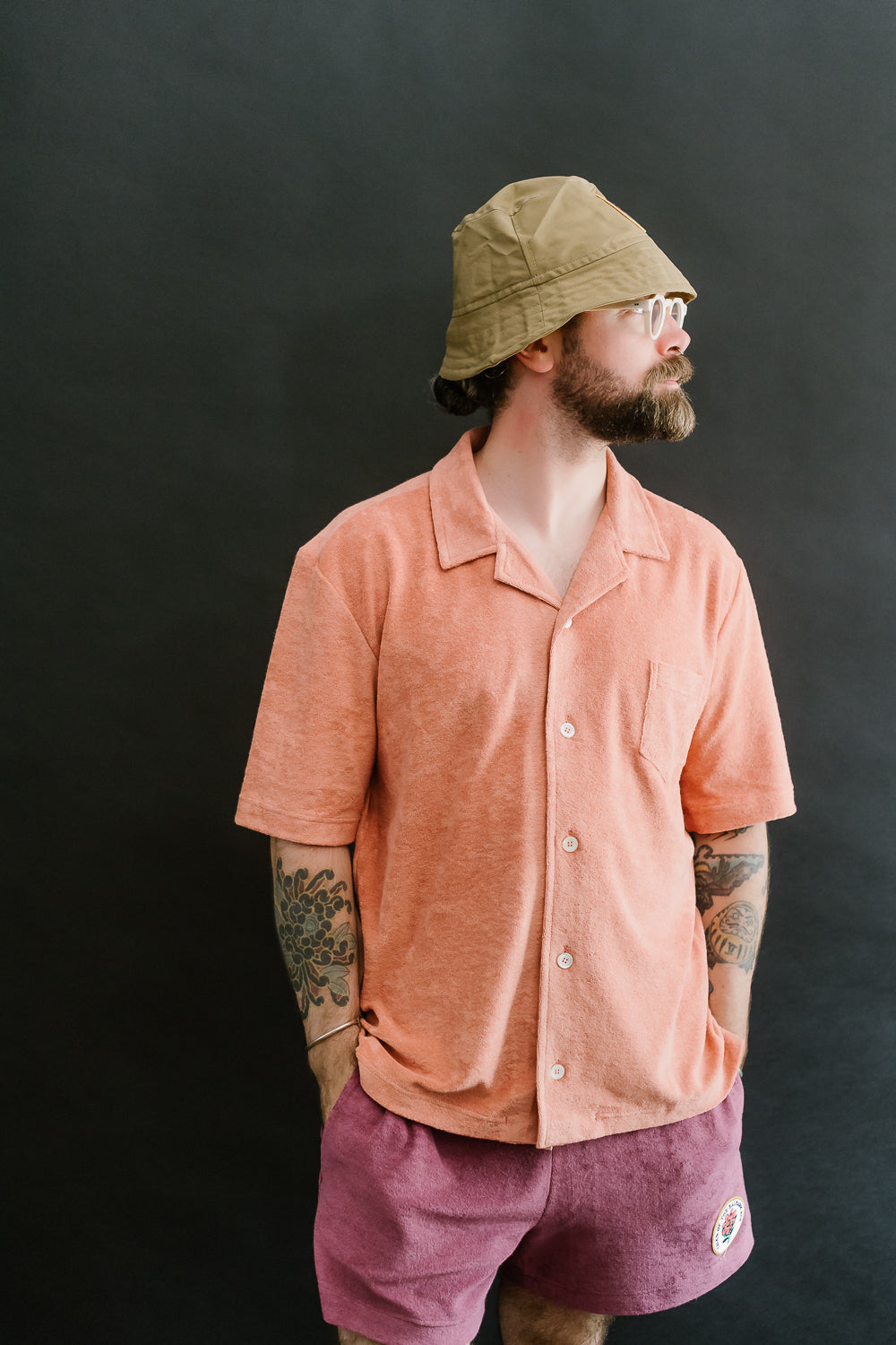 We were introduced to the "towel" style tee a few years ago and haven't been able to get enough since. This "knit in Belgium" tag ensures that Howlin' oversees every step of the process on this custom knit fabric. It's fluffy, absorbent, and breathable due to the special knitting technique used to create the looped piles. This round, we've gone full-on and tried a few new silhouettes. We start with this vacation-style shirt that we think suits the fabric perfectly. It's super comfy and can be worn with a set of jeans or its mate in the pants.