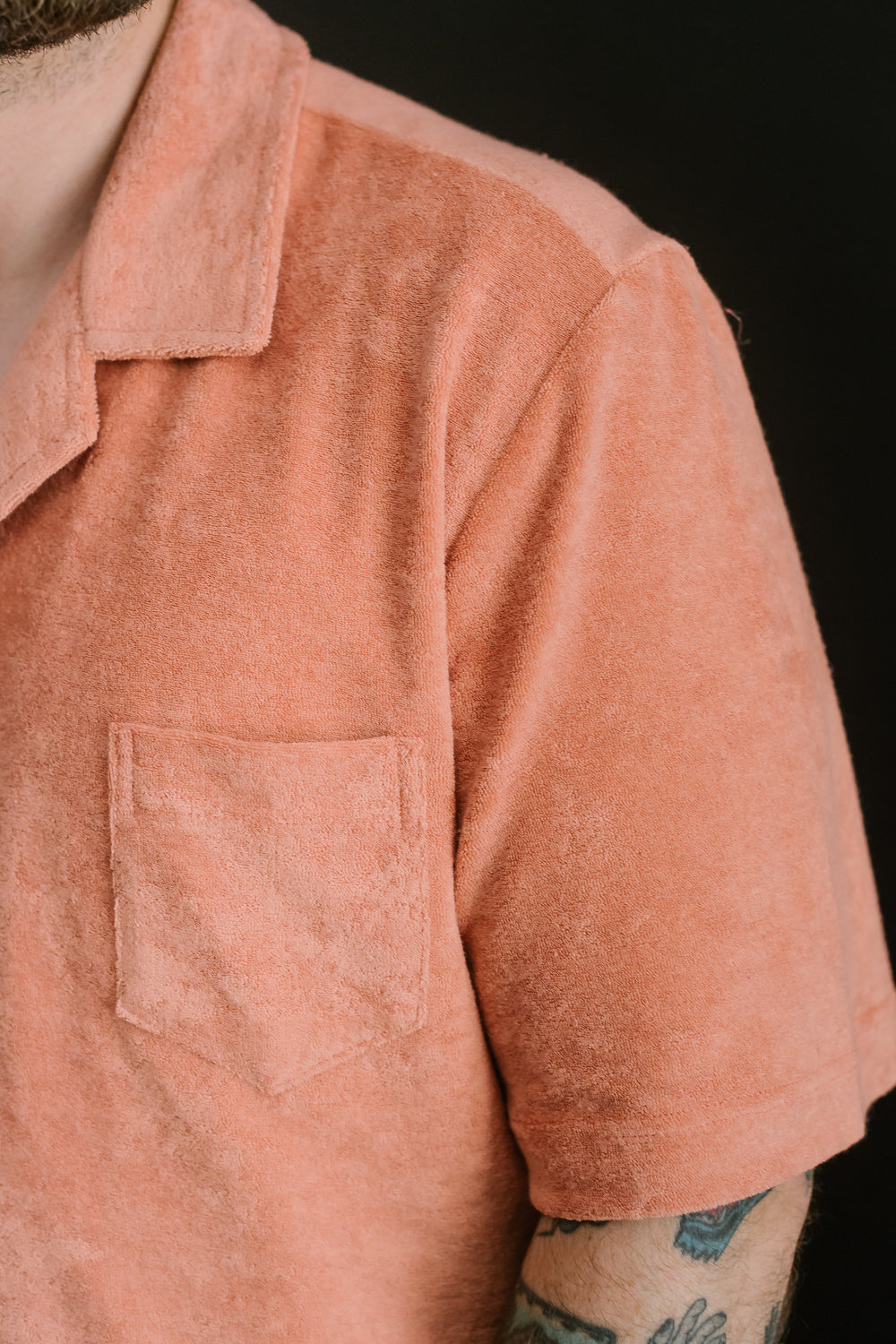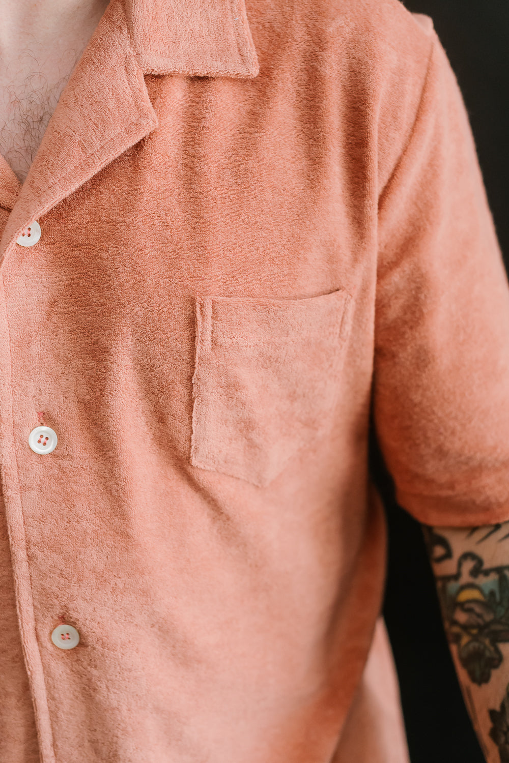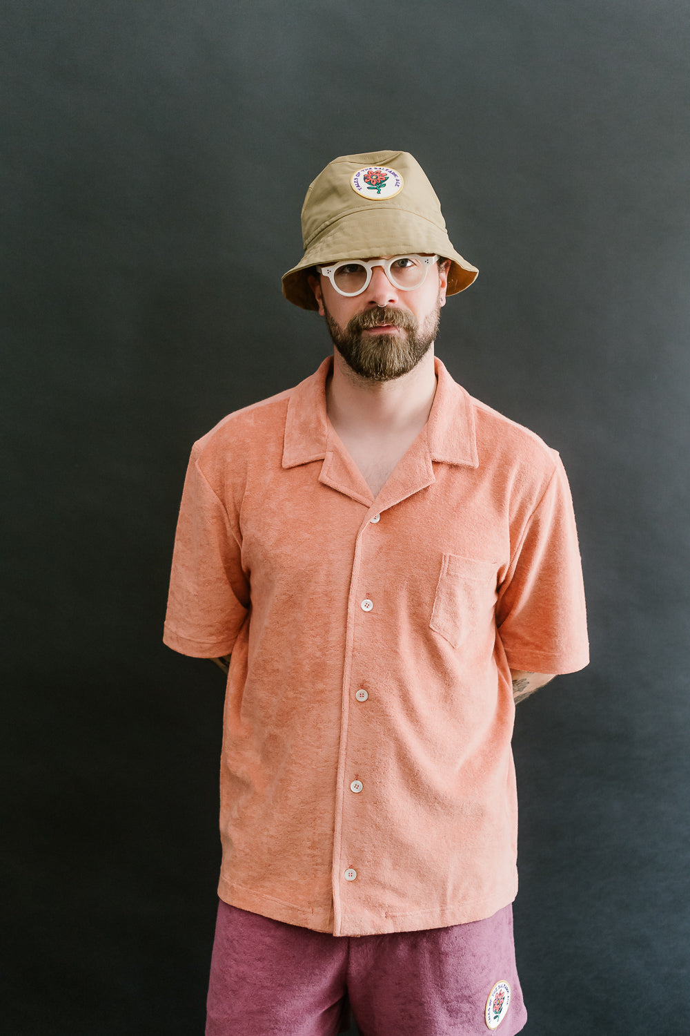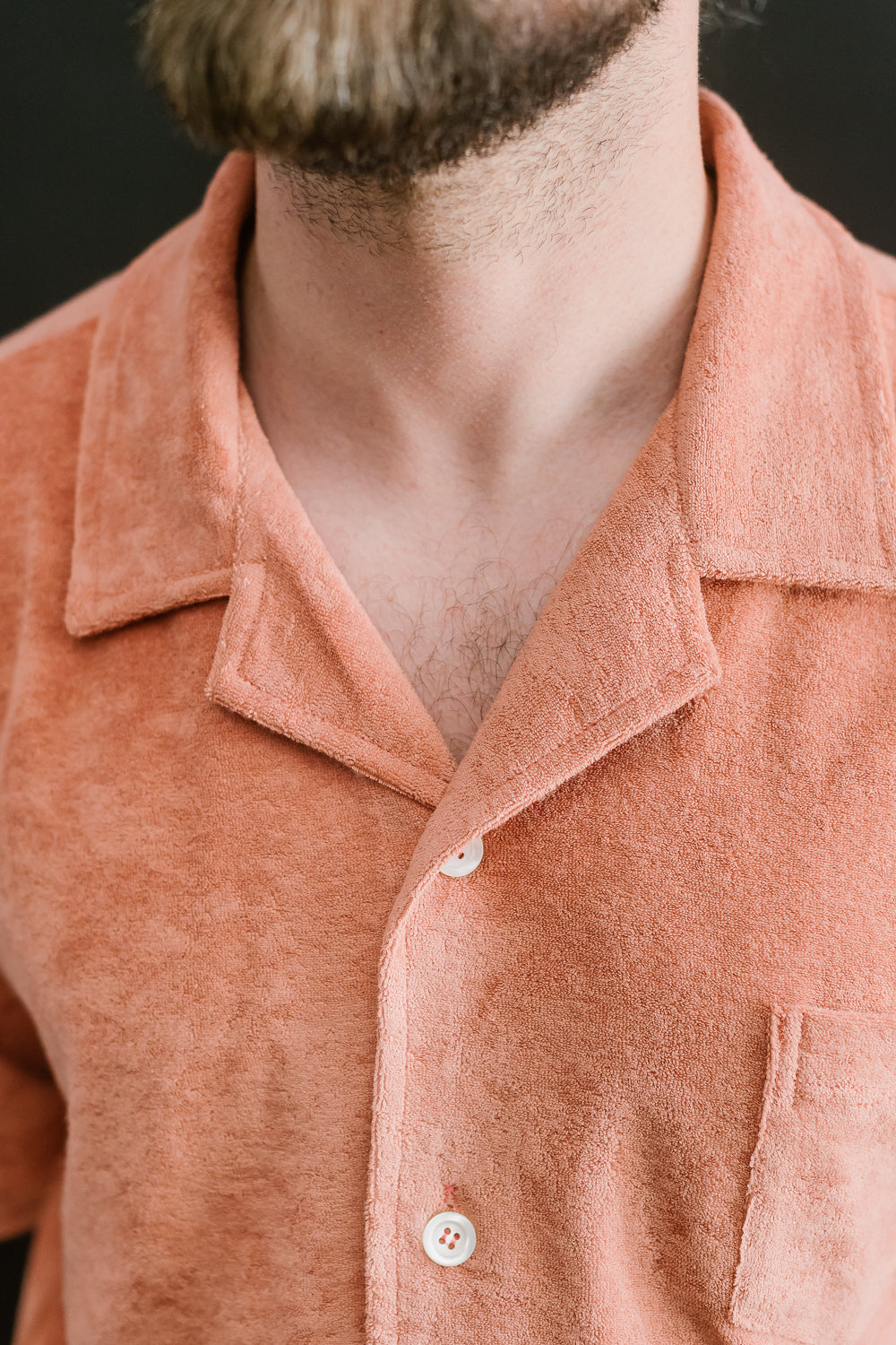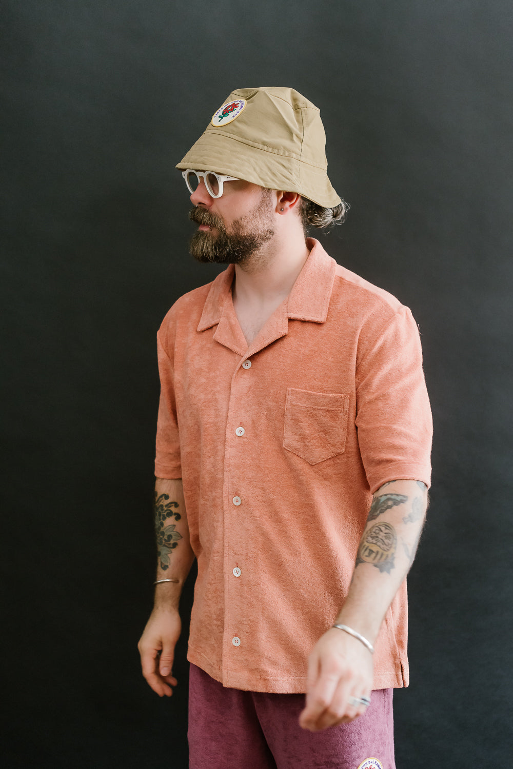 We were introduced to the "towel" style tee a few years ago and haven't been able to get enough since. This "knit in Belgium" tag ensures that Howlin' oversees every step of the process on this custom knit fabric. It's fluffy, absorbent, and breathable due to the special knitting technique used to create the looped piles. This round, we've gone full-on and tried a few new silhouettes. We start with this vacation-style shirt that we think suits the fabric perfectly. It's super comfy and can be worn with a set of jeans or its mate in the pants.
