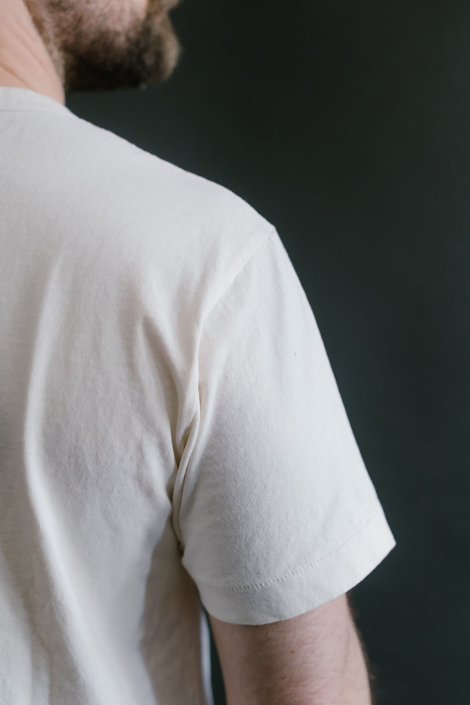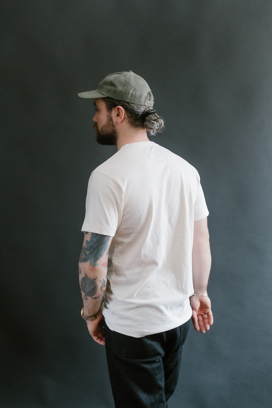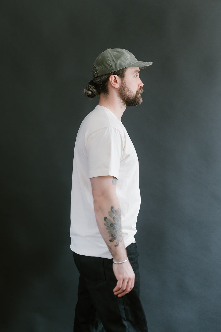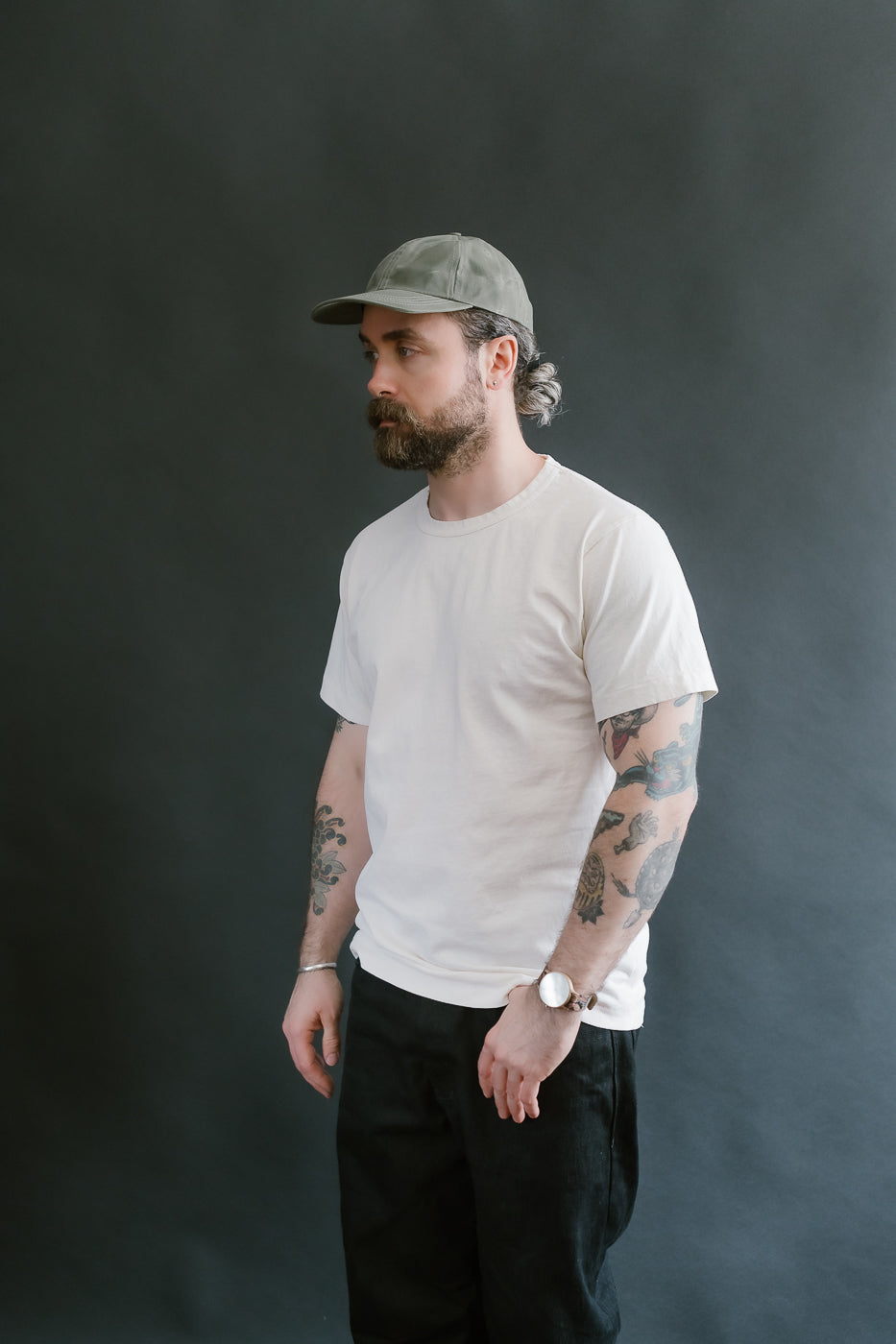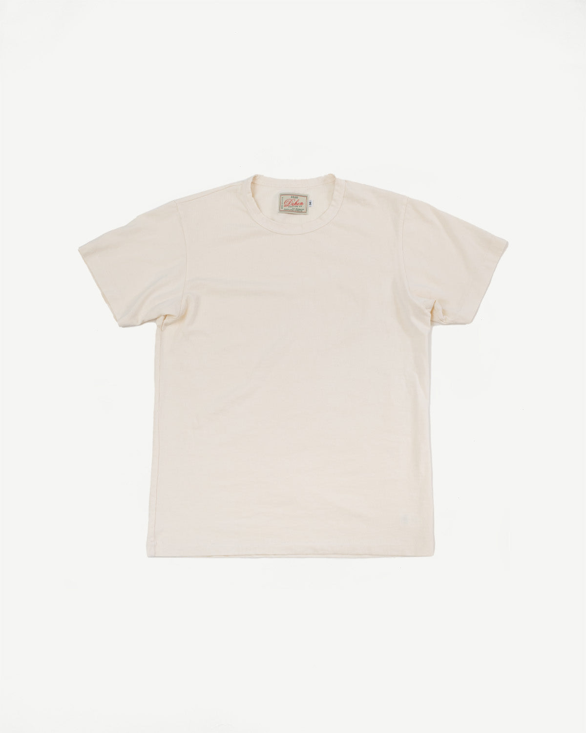 The Dehen 1920 Heavy Duty T-Shirt is a no-nonsense staple, cut and sewn in the USA with the same rugged standards that define the rest of the brand’s lineup. Made from a 5.6 oz. 100% cotton jersey knit in-house, this tee feels dense and substantial without being stiff or bulky. It’s built to hold its shape and structure through years of wear, with a self-bound collar and double-needle construction reinforcing every seam. The fit is classic and comfortable - neither slim nor oversized - meant to serve as a foundational piece, whether worn on its own or as a layer. This is the kind of tee that becomes a daily uniform piece, made better by every wash and wear.