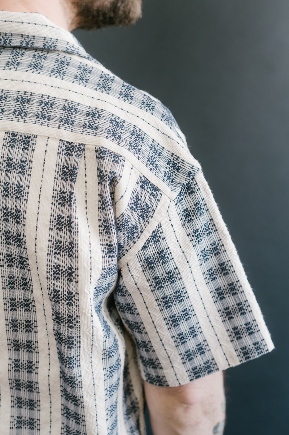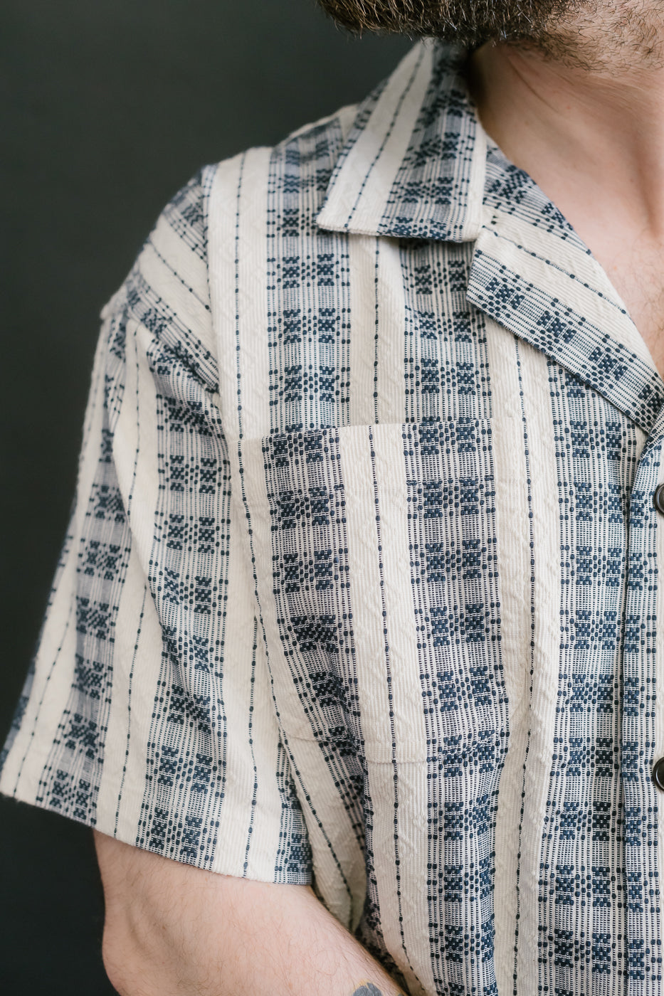 M-I-001 - Beldi Jacquard Aloha Shirt - Off White, Navy
