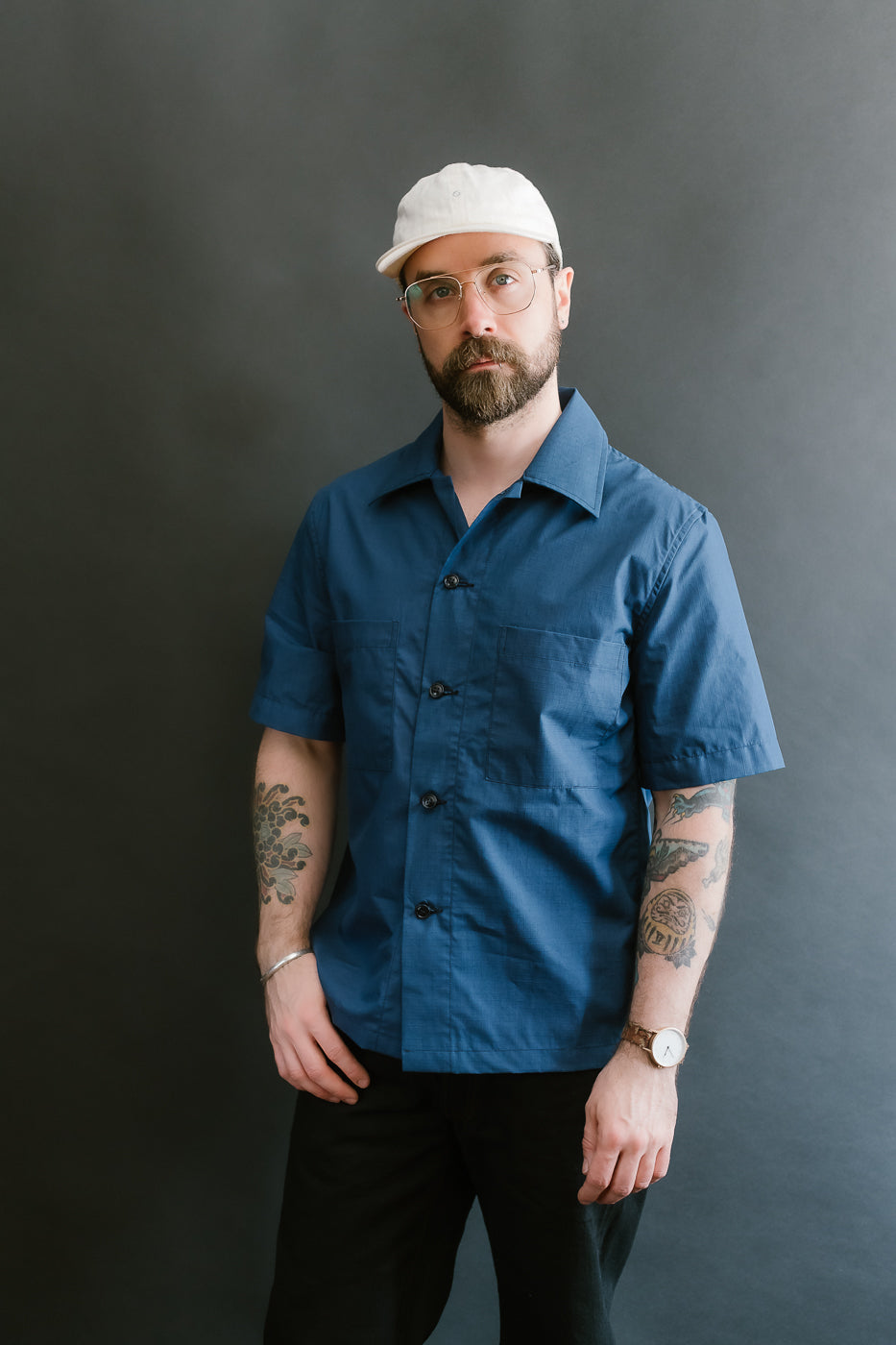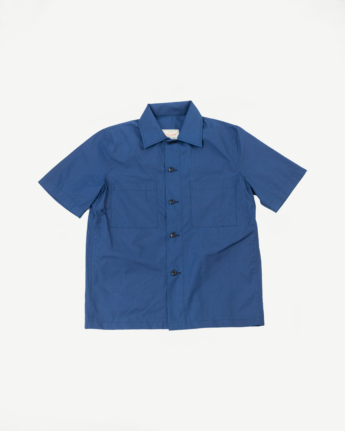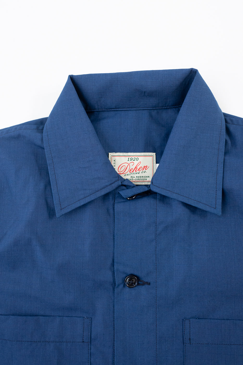 Dehen’s Short Sleeve Skyliner Shirt in Indigo Ripstop brings military-grade fabric to a warm-weather classic. Inspired by early workwear and utility shirts, this version is built from a 100% cotton ripstop — a rugged, grid-woven fabric originally developed to prevent tearing under stress. It's garment-dyed in indigo, giving it a rich color that will fade and evolve over time with wear and washing. The silhouette is relaxed without being oversized, designed for layering or standalone wear. Details like two chest pockets, reinforced seams, and an oversized button placket bring durability without sacrificing refinement. Sewn in Portland, Oregon, this is the kind of shirt that earns its place in your rotation and only gets better the more you wear it.