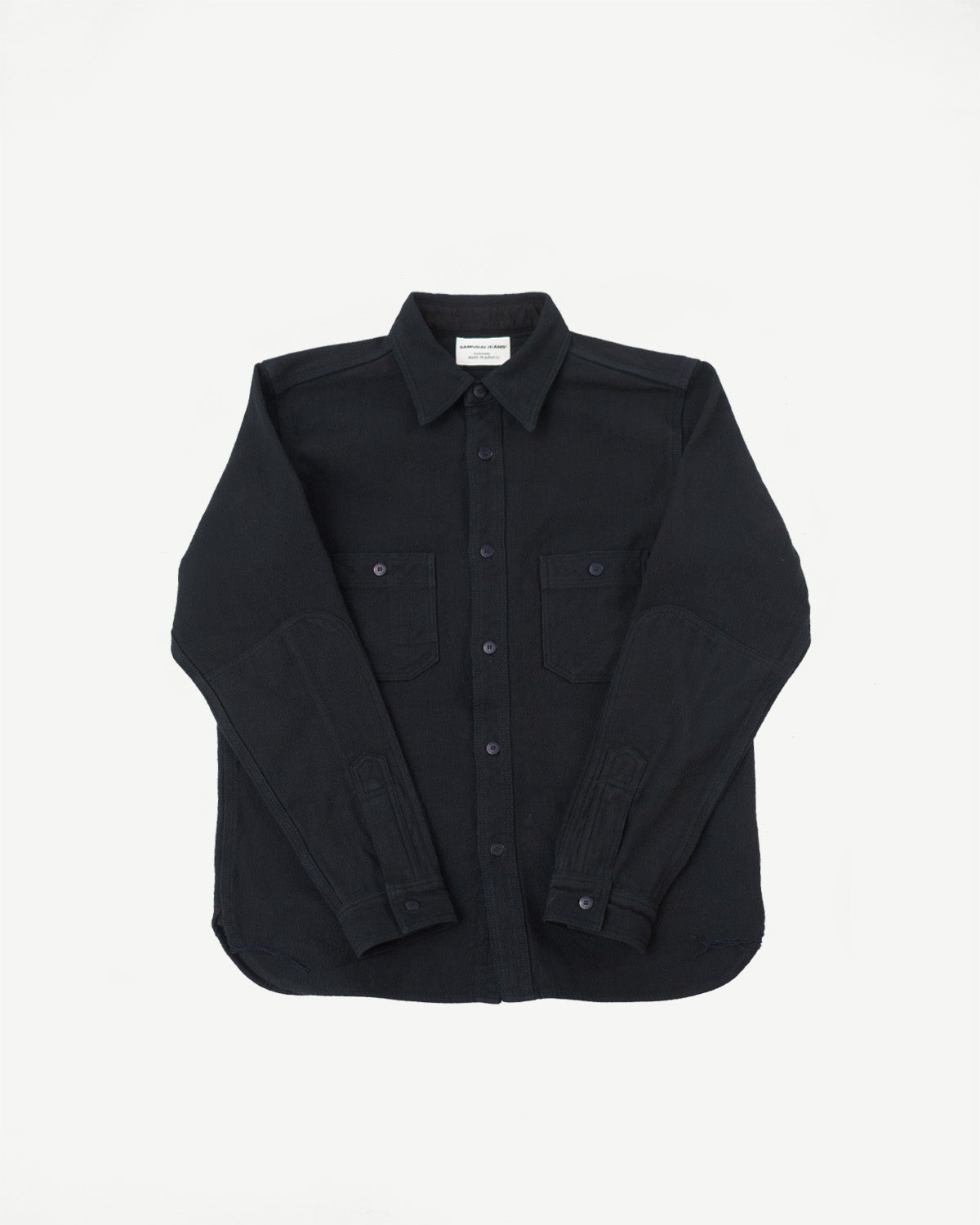 SSN24-01W - Overdyed Sashiko Flannel Work Shirt - Black