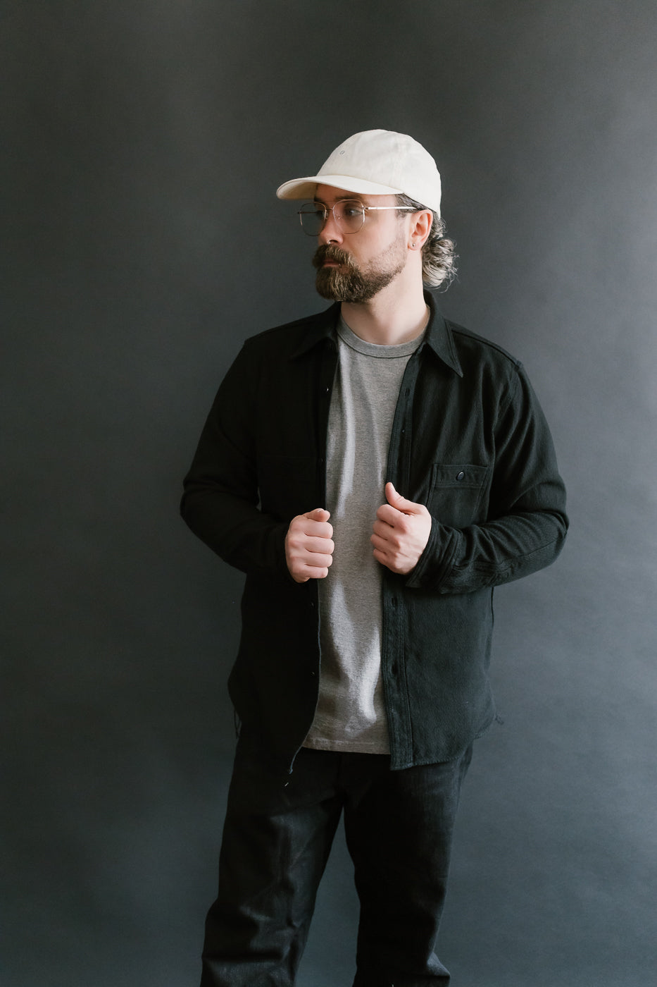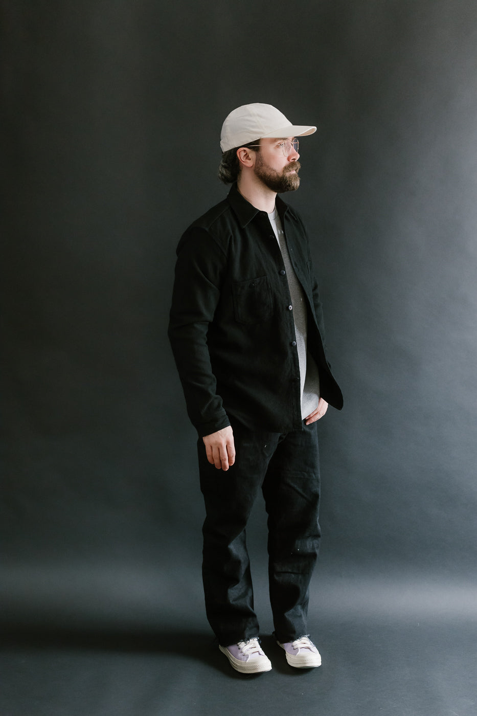 Samurai’s SSN24-01W is a one-wash work shirt made from a deeply textured sashiko flannel, overdyed black to deliver a powerful presence right out of the gate. The fabric has a dry, structured hand thanks to its low-tension weave, and the sashiko threads add dimensionality while promising striking fades over time. Indigo-dyed nut buttons and triple-needle chainstitching reinforce the shirt’s blend of heritage technique and workwear toughness. Rounded chest pockets, chainstitch runoff at the gussets, and more roomy western cut give this shirt a ton of attitude. Don't miss that union tag on the interior. One of those rare pieces that feels both purposeful and refined.