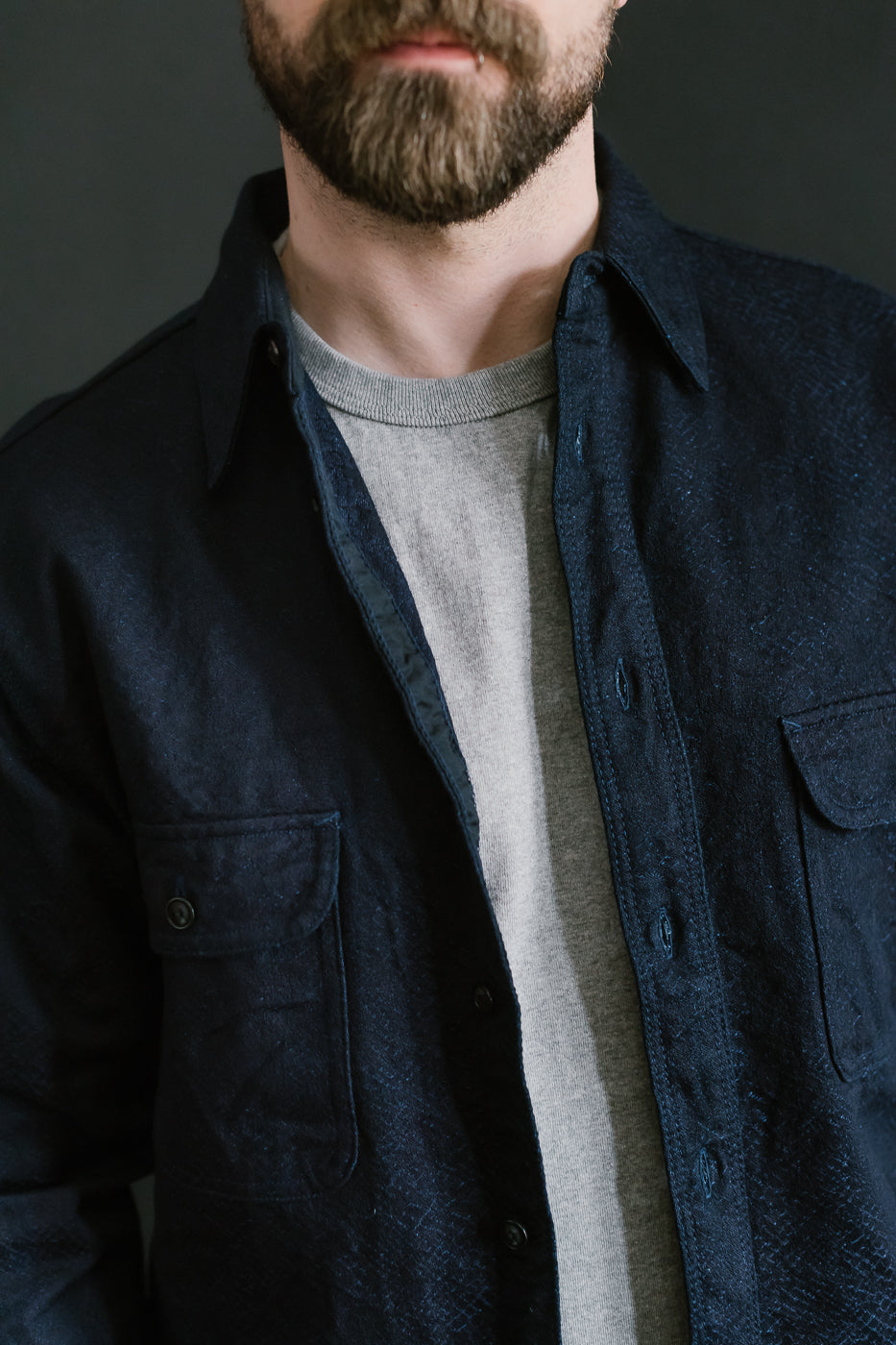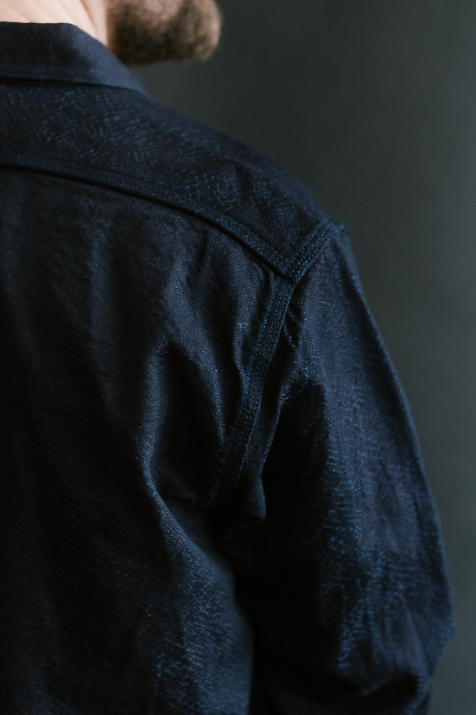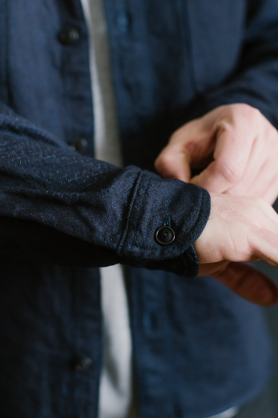 SSN25-01W - Snake Jacquard Work Shirt - Indigo